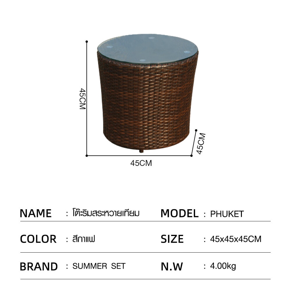 SUMMER SET โต๊ะริมสระหวายเทียม รุ่น ภูเก็ต ขนาด 45x45x40ซม.สีกาแฟ