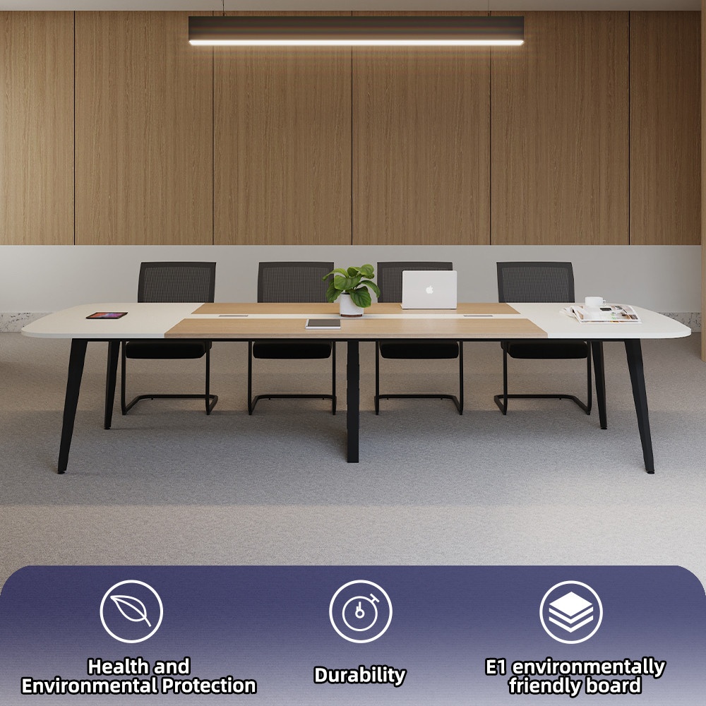 โต๊ะประชุมดีไซน์ทันสมัยที่ออกแบบมาเพื่อรองรับการใช้งานในห้องประชุมขนาดใหญ่ ด้วยรูปทรงที่เรียบง่ายและโทนสีขาวสะอาดตา ช่วยเสริมภาพลักษณ์ที่เป็นมืออาชีพและเปิดกว้างในการสื่อสาร เหมาะสำหรับการประชุมที่ต้องการพื้นที่กว้างขวางและความมั่นคงของเฟอร์นิเจอร์
