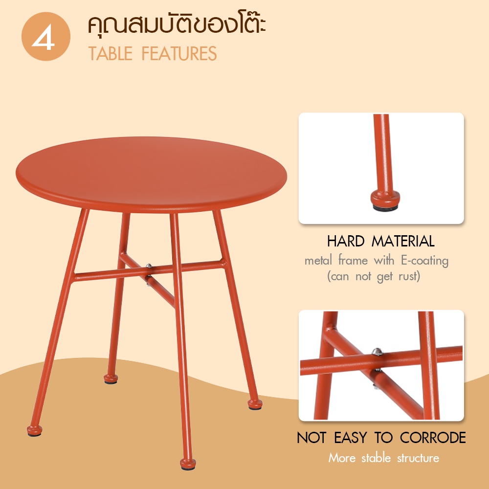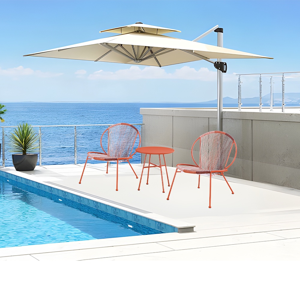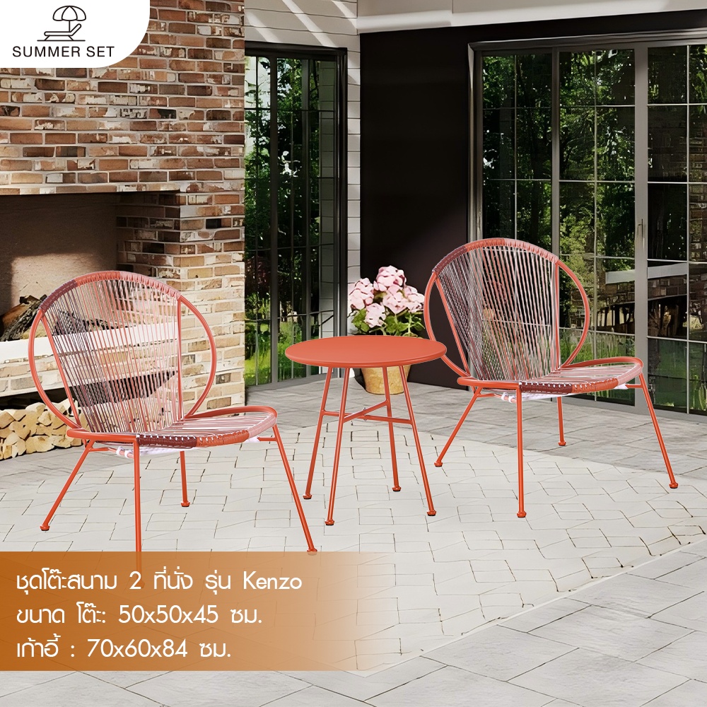 ชุดโต๊ะสนาม 2 ที่นั่ง รุ่น Kenzo เป็นเฟอร์นิเจอร์กลางแจ้งที่โดดเด่นด้วยสีแดงสดใส เพิ่มความมีชีวิตชีวาและความอบอุ่นให้กับทุกพื้นที่ ไม่ว่าจะเป็นสวน ระเบียง หรือชานบ้าน ด้วยดีไซน์ทันสมัยและขนาดกะทัดรัด ทำให้ชุดนี้เหมาะกับพื้นที่จำกัด หรือมุมพักผ่อนขนาดเล็กได้อย่างลงตัว