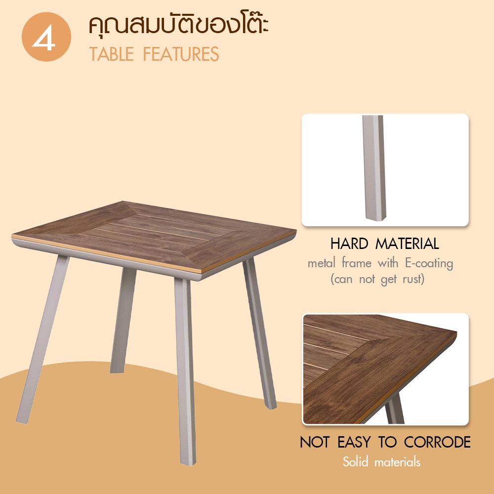 ขนาดโต๊ะ: 80 x 80 x 75 ซม.