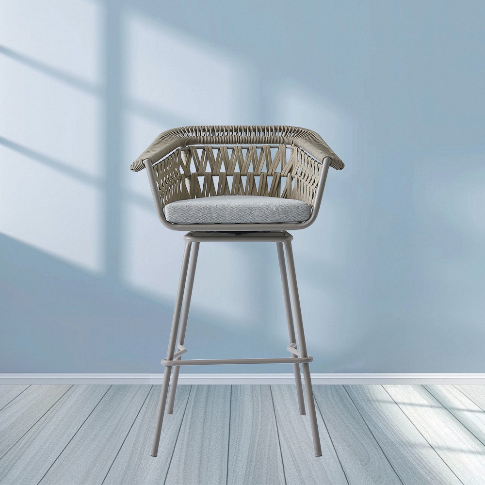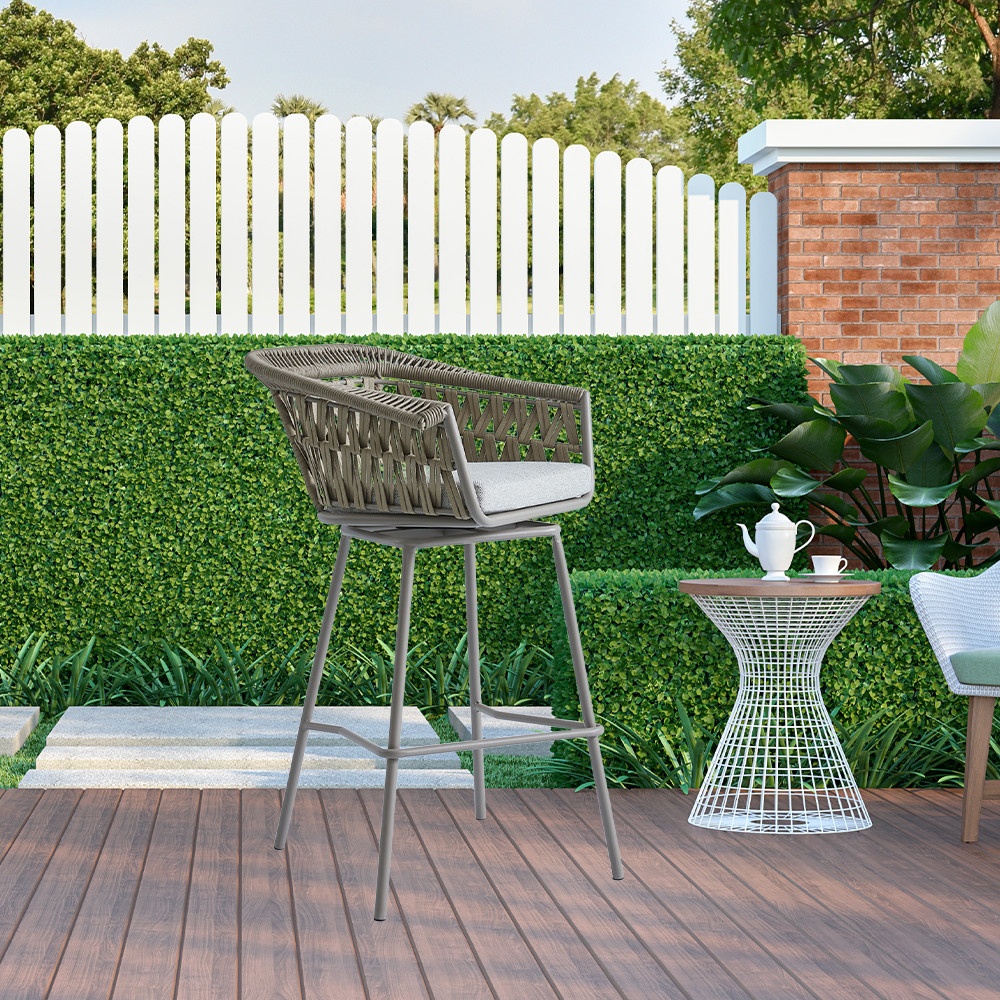 PULITO เก้าอี้สตูลบาร์ทรงสูงเชือกถัก รุ่น Jose ขนาด 68x56x100 ซม. สีเบจ