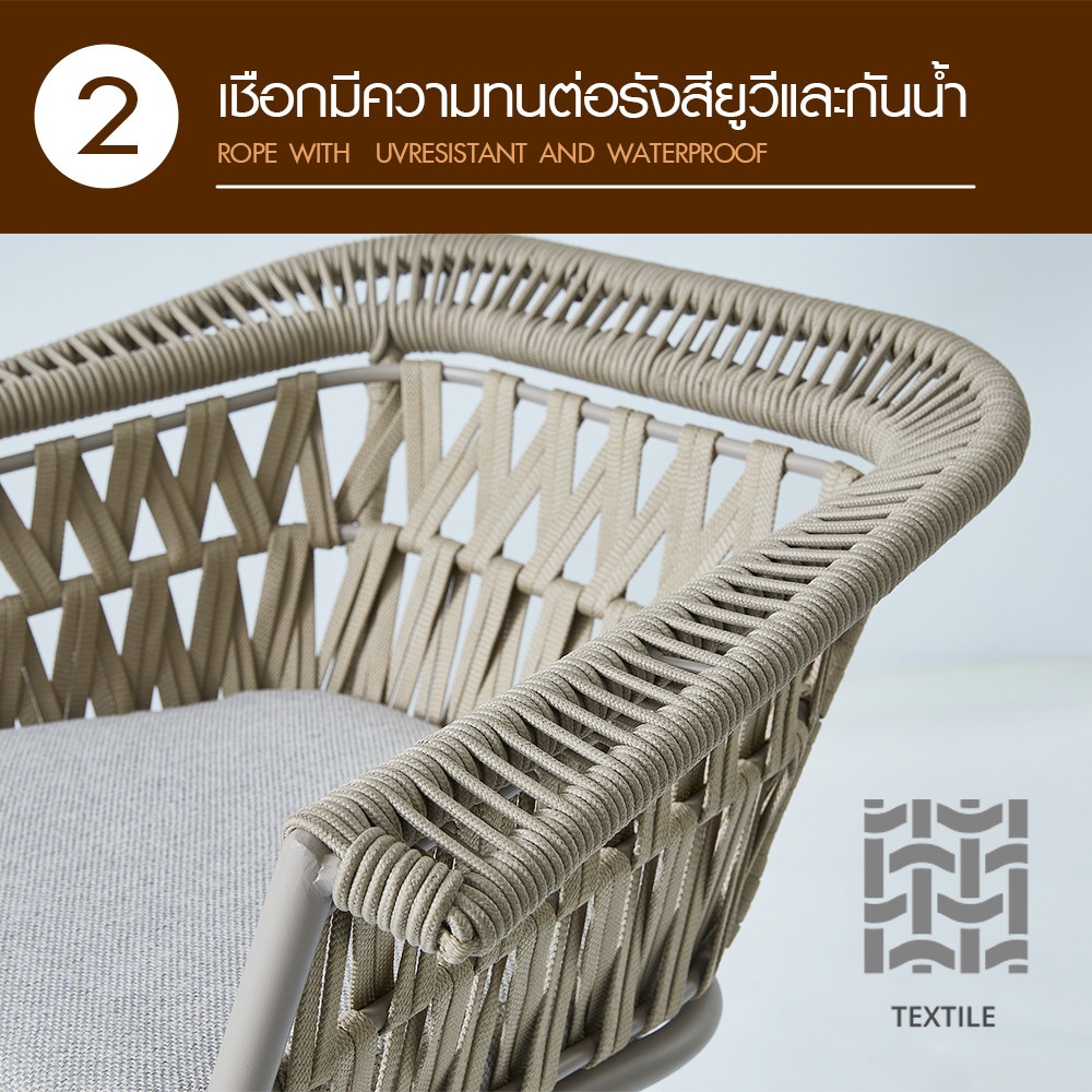 วัสดุทนทานต่อสภาพอากาศ – เชือก UV และกันน้ำ พร้อมโครงเหล็ก E-Coating แข็งแรง ใช้งานได้ทั้งในร่มและกลางแจ้ง