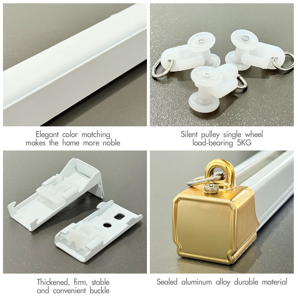 ทุกชิ้นส่วนได้รับการออกแบบมาเพื่อการใช้งานร่วมกันอย่างมีประสิทธิภาพ ทำให้มั่นใจได้ว่ารางผ้าม่านของคุณจะแข็งแรง ทนทาน และใช้งานได้ยาวนาน
