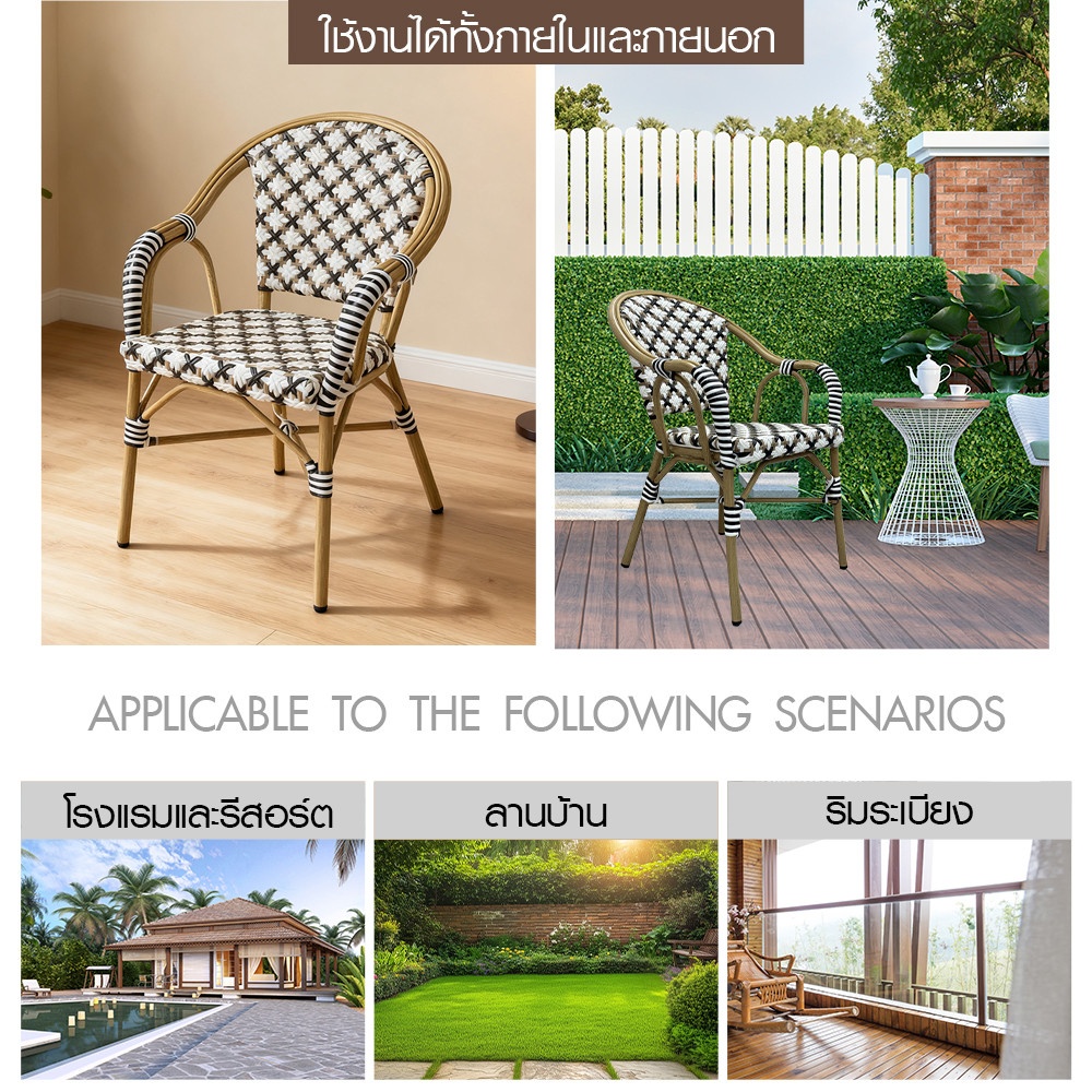 สีครีม-น้ำตาล (Cream-Brown) สีเอิร์ธโทนที่ให้ความรู้สึกอบอุ่น ผ่อนคลาย และเป็นธรรมชาติ ทำให้เก้าอี้สามารถเข้ากันได้ดีกับสภาพแวดล้อมกลางแจ้ง ไม่ว่าจะเป็นสีเขียวของต้นไม้ ดอกไม้ หรือวัสดุตกแต่งอื่นๆ เช่น ไม้ อิฐ หรือหินค่ะ สีครีมจะช่วยเพิ่มความสว่างและความรู้สึกสะอาดตา ส่วนสีน้ำตาลจะช่วยเพิ่มความลุ่มลึกและเป็นกันเอง