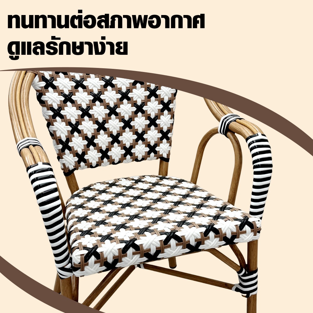 SUMMER SET เก้าอี้สนามอลูมิเนียมหวายเทียม รุ่น CAPRI-CB ขนาด 60x60x84 ซม. สีครีม-น้ำตาล