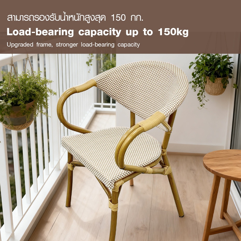 เก้าอี้รุ่น ROME-CO สามารถ รองรับน้ำหนักได้สูงสุดถึง 150 กก. ซึ่งเป็นคุณสมบัติที่น่าประทับใจและบ่งบอกถึงความแข็งแรงและความปลอดภัย ไม่ว่าจะใช้งานในบ้านพักอาศัย หรือในเชิงพาณิชย์ เช่น ร้านอาหารกลางแจ้ง หรือคาเฟ่ ก็ตอบโจทย์ได้อย่างดี