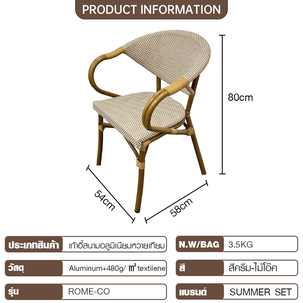 SUMMER SET เก้าอี้สนามอลูมิเนียมหวายเทียม รุ่น ROME-CO ขนาด 54x58x80 ซม. สีครีม-ไม้โอ๊ค