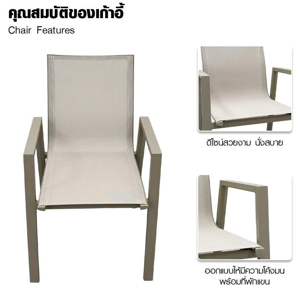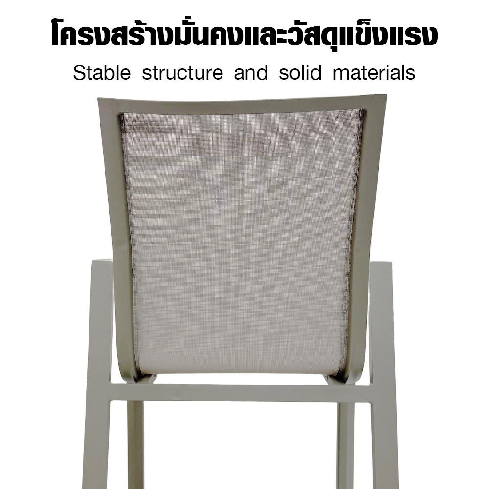 ด้วยการผสมผสานโครงสร้างอลูมิเนียมที่แข็งแกร่งเข้ากับผ้า Textilene ที่ทนทานและนั่งสบาย ทำให้เก้าอี้รุ่น PAVIA-G สามารถ รองรับน้ำหนักได้สูงสุดถึง 150 กก. ซึ่งเป็นคุณสมบัติที่น่าประทับใจและบ่งบอกถึงความแข็งแรงและความปลอดภัย ไม่ว่าจะใช้งานในบ้านพักอาศัย หรือในเชิงพาณิชย์ เช่น ร้านอาหารกลางแจ้ง หรือคาเฟ่ ก็ตอบโจทย์ได้อย่างดีเยี่ยมค่ะ