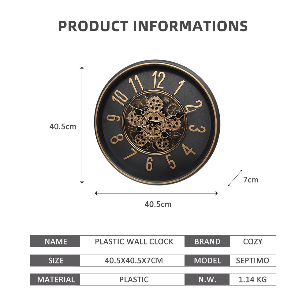 COZY นาฬิกาแขวนผนัง รุ่น SEPTIMO ขนาด 40.5x40.5x7 ซม. สีดำ