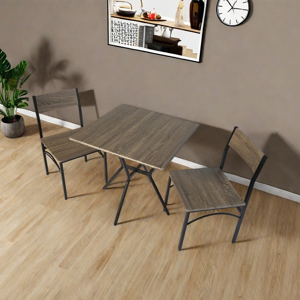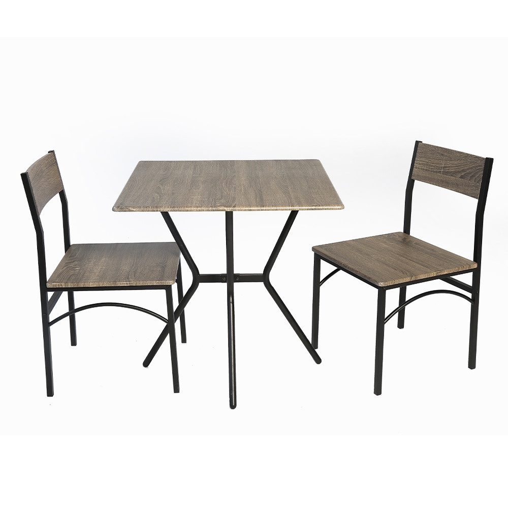 ชุดนี้ประกอบด้วยโต๊ะทรงสี่เหลี่ยมจัตุรัสขนาด 75 x 75 x 76 ซม. และเก้าอี้ 2 ตัว ขนาด 46 x 51 x 82 ซม. พื้นโต๊ะและที่นั่งผลิตจาก MDF หนา 15 มม. เคลือบ PVC ทำให้ได้พื้นผิวที่เรียบเนียน สวยงาม และง่ายต่อการเช็ดทำความสะอาด โครงสร้างหลักของโต๊ะทำจาก ท่อเหล็กกลมขนาด 25 x 0.8 มม. เคลือบผงกันสนิม (Powder Coating Finished) เพื่อเพิ่มความทนทานต่อการใช้งานและป้องกันการเกิดสนิม