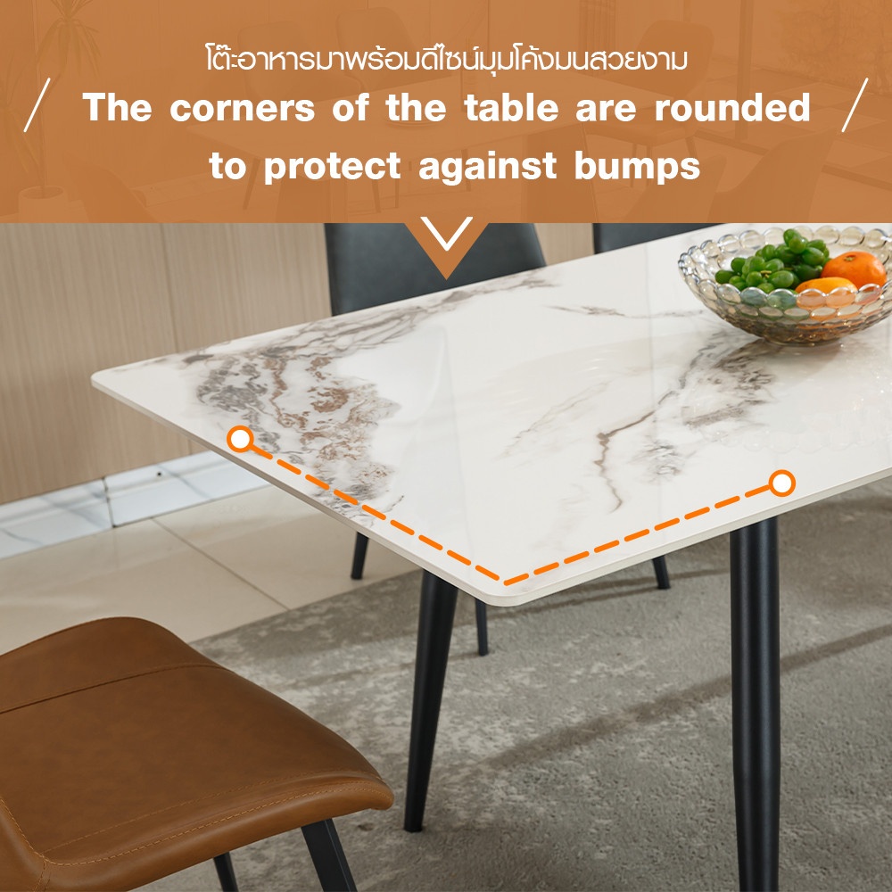 ท็อปโต๊ะที่ผลิตจาก (Rock Board) ความหนา 1.2 ซม. มีความแข็งแกร่ง ทนทานต่อรอยขีดข่วนได้ดีเยี่ยม ไม่ต้องกังวลเมื่อวางจานชามหรือภาชนะต่างๆ ทนความร้อนสูง คุณจึงสามารถวางหม้อร้อนๆ หรือจานอาหารที่เพิ่งปรุงเสร็จได้โดยไม่ต้องกลัวว่าจะเกิดความเสียหาย นอกจากนี้ยังทนทานต่อคราบสกปรก ทำความสะอาดง่าย ไม่ดูดซึมน้ำหรือน้ำมัน ซึ่งช่วยให้ถูกสุขอนามัยและดูแลรักษาง่าย