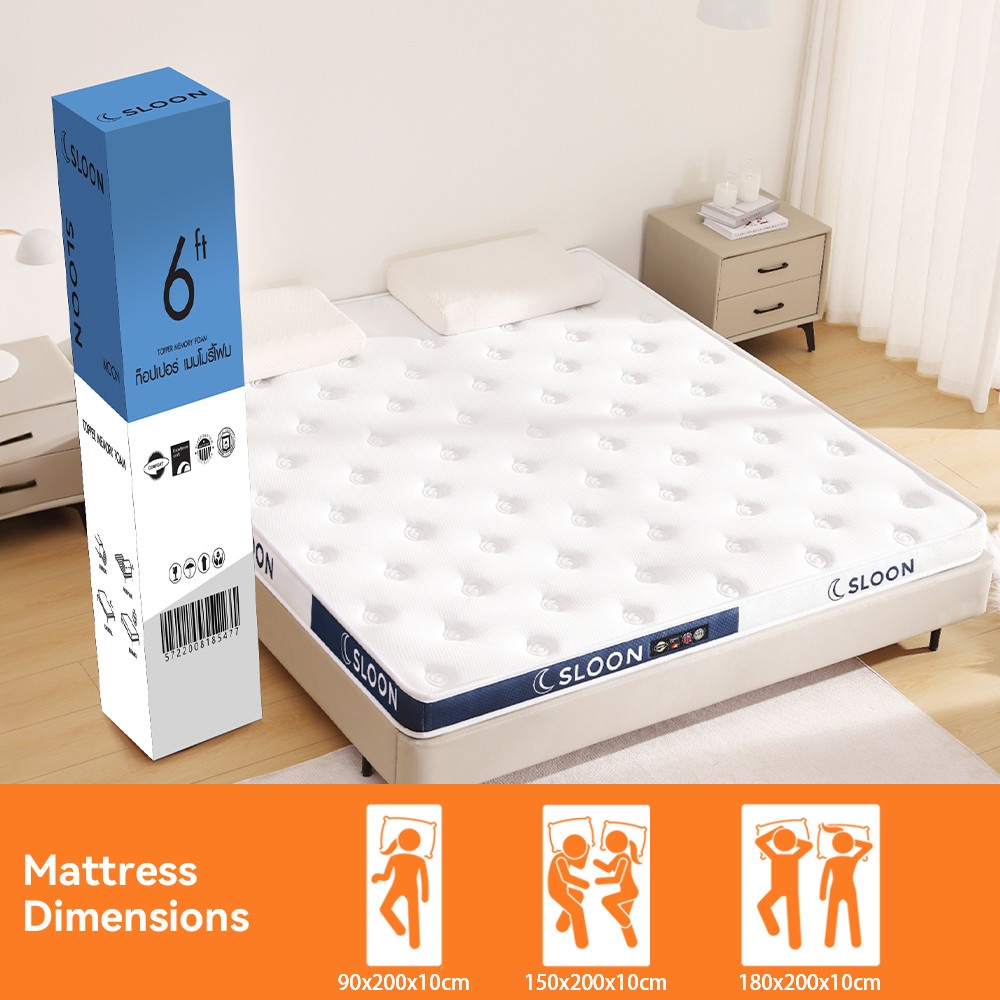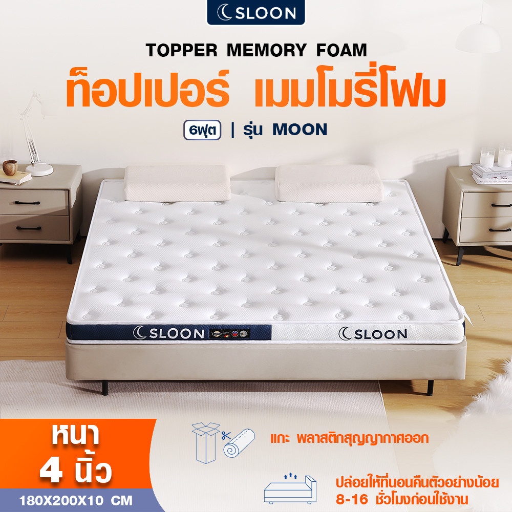 SLOON ท็อปเปอร์ เมมโมรี่โฟม รุ่น Moon ความหนา 4 นิ้ว ขนาด 180x200x10 ซม. (6ฟุต) สีขาว