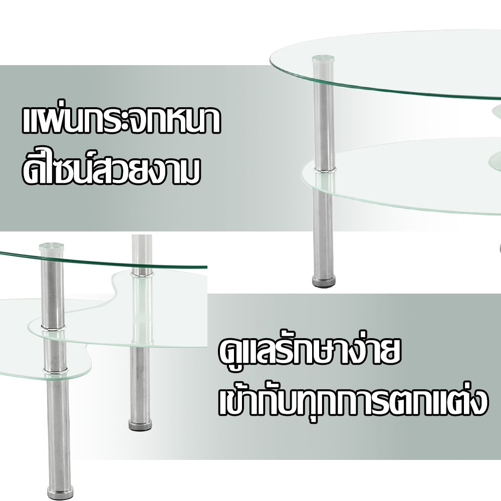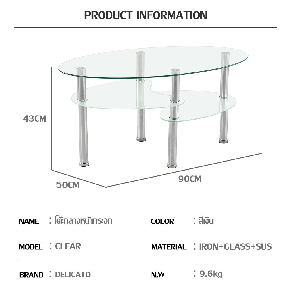 โต๊ะใช้ ท็อปกระจกใส (Clear Glass) ที่ช่วยให้ห้องดูโปร่ง โล่งสบายตา ไม่ทึบตัน และสะท้อนแสงไฟหรือแสงธรรมชาติได้อย่างสวยงาม เพิ่มความสว่างให้กับพื้นที่ได้อย่างยอดเยี่ยมค่ะ การผสานกับ สีเงิน (Silver) ของขาโต๊ะ ทำให้โต๊ะกลางชิ้นนี้ดูทันสมัย มีเสน่ห์แบบลักซ์ชัวรี และสามารถเข้ากันได้ดีกับการตกแต่งภายในที่หลากหลาย ไม่ว่าจะเป็นสไตล์โมเดิร์น คอนเทมโพรารี หรือแม้แต่การตกแต่งที่ต้องการความเรียบหรู ก็จะช่วยเสริมให้ห้องของคุณดูมีรสนิยมและน่าอยู่มากยิ่งขึ้น