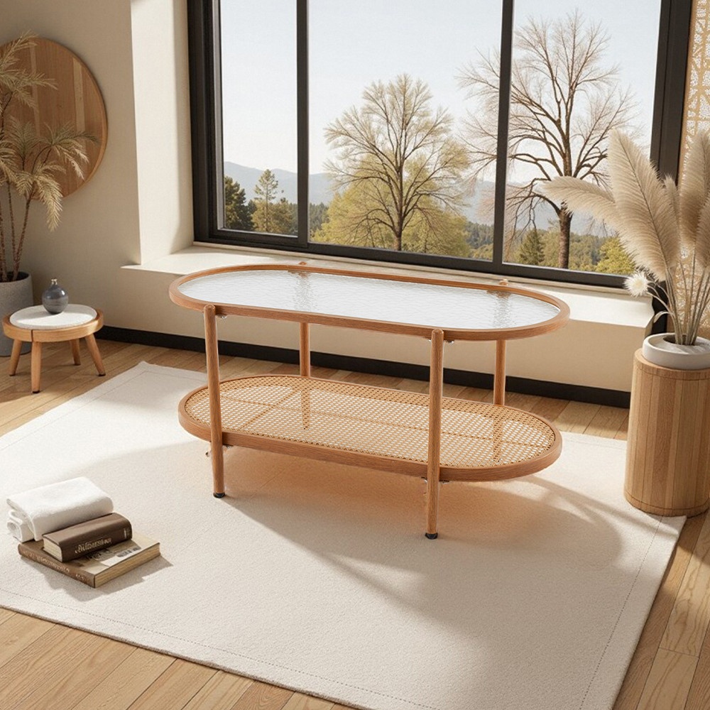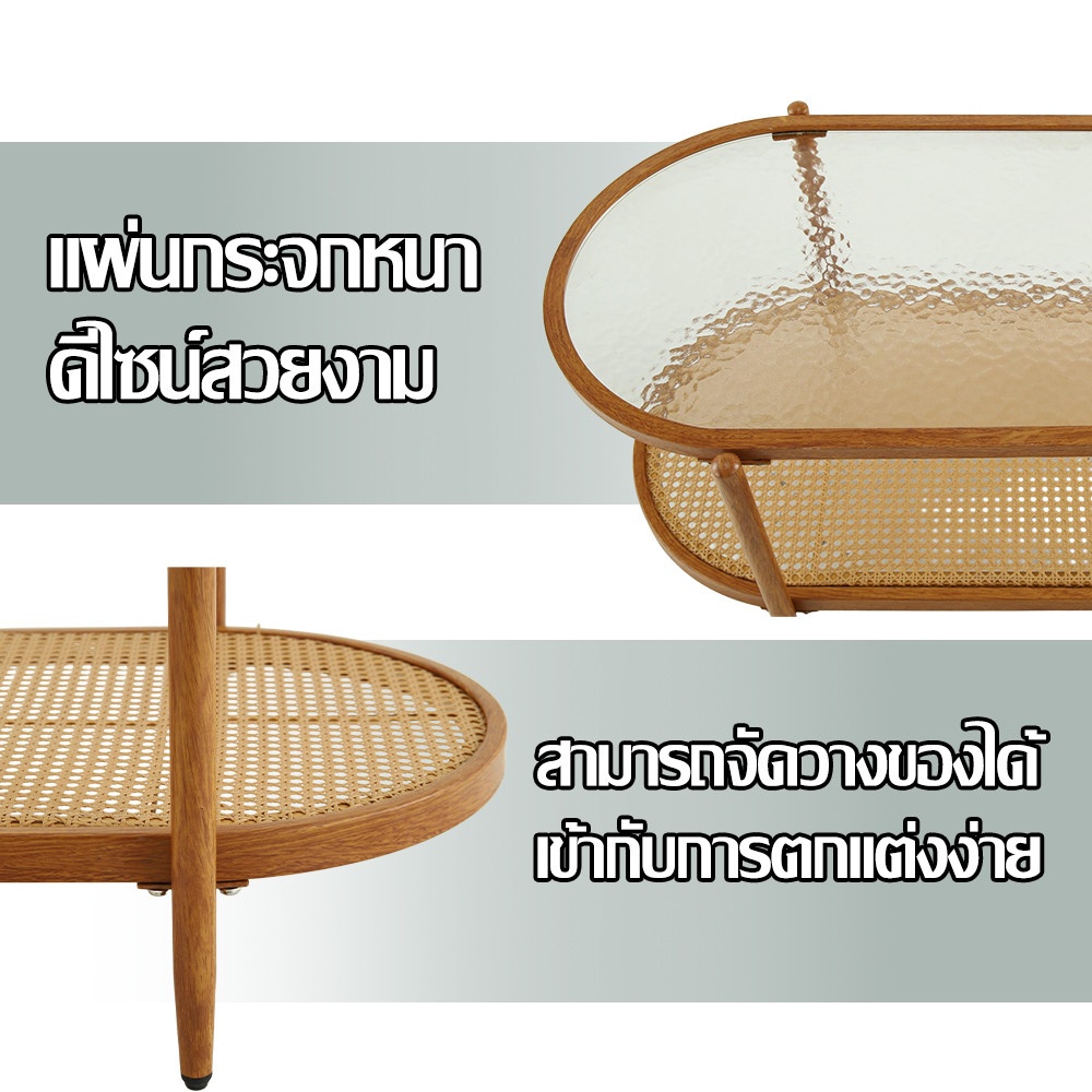 DELICATO โต๊ะกลางหน้ากระจก รุ่น LUMINA ขนาด 50x96x46 ซม. สีชา