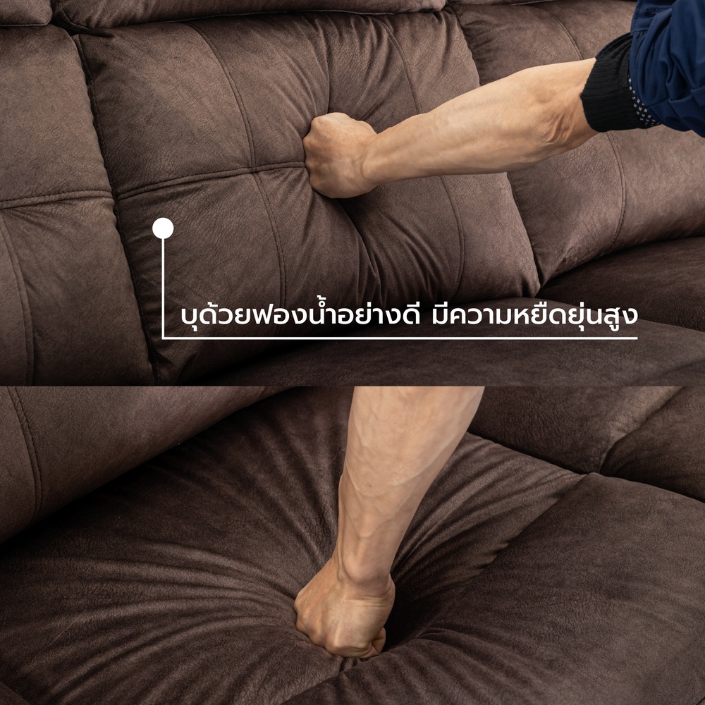 - เก้าอี้พักผ่อนหนังผ้า 3 ที่นั่ง บุด้วยฟองน้ำอย่างดี มีความยืดหยุ่นสูง นั่งสบาย