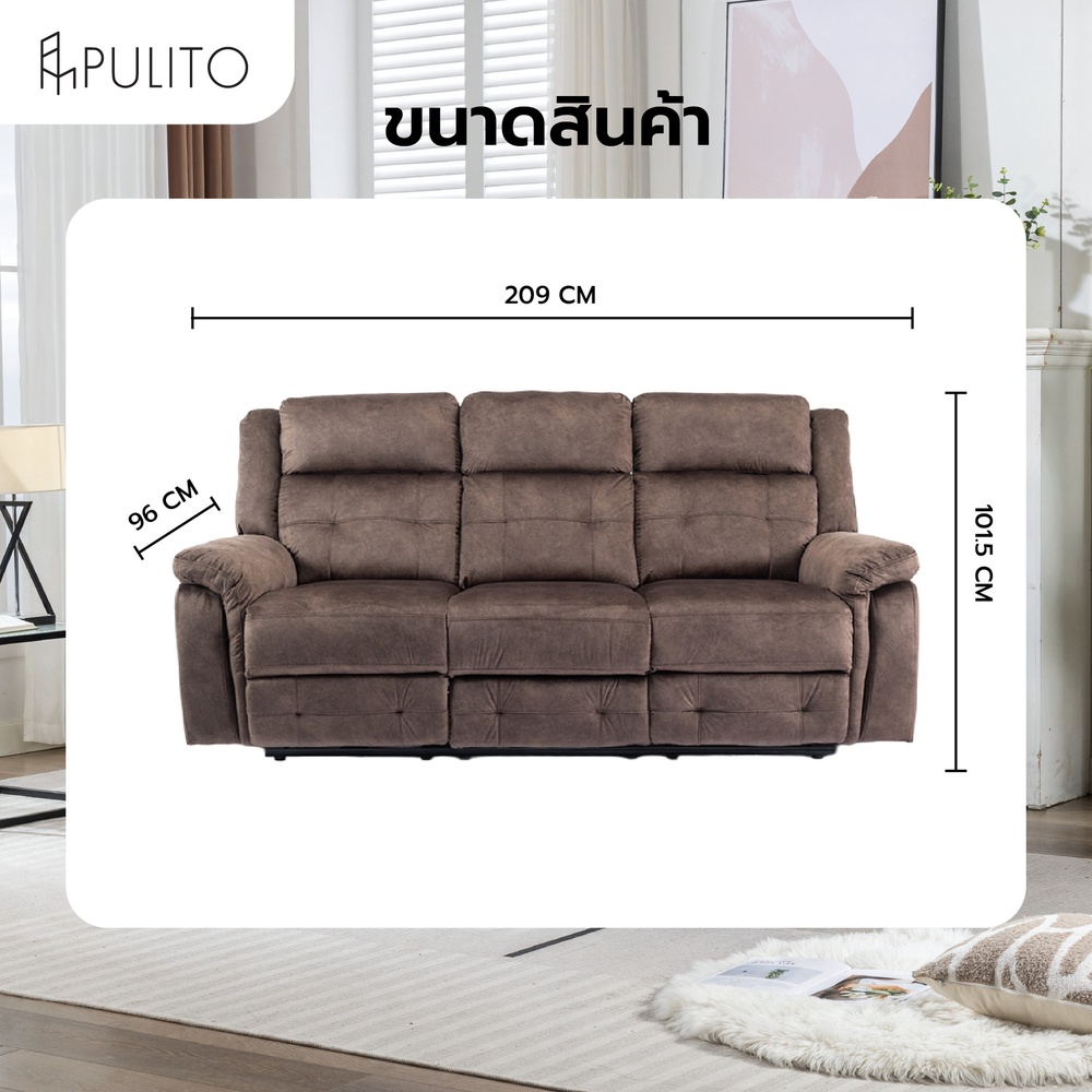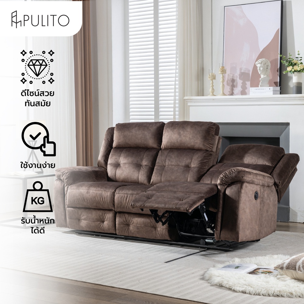 PULITO เก้าอี้พักผ่อนผ้าปรับระดับไฟฟ้า 3 ที่นั่ง รุ่น LINCOLN ขนาด 209x96x101.5 ซม. สีน้ำตาล