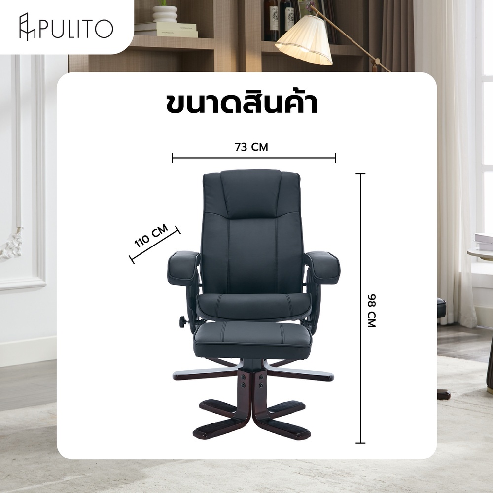 PULITO เก้าอี้พักผ่อนพร้อมที่วางขา รุ่น DIEGO ขนาด 73x110x98 ซม. สีดำ