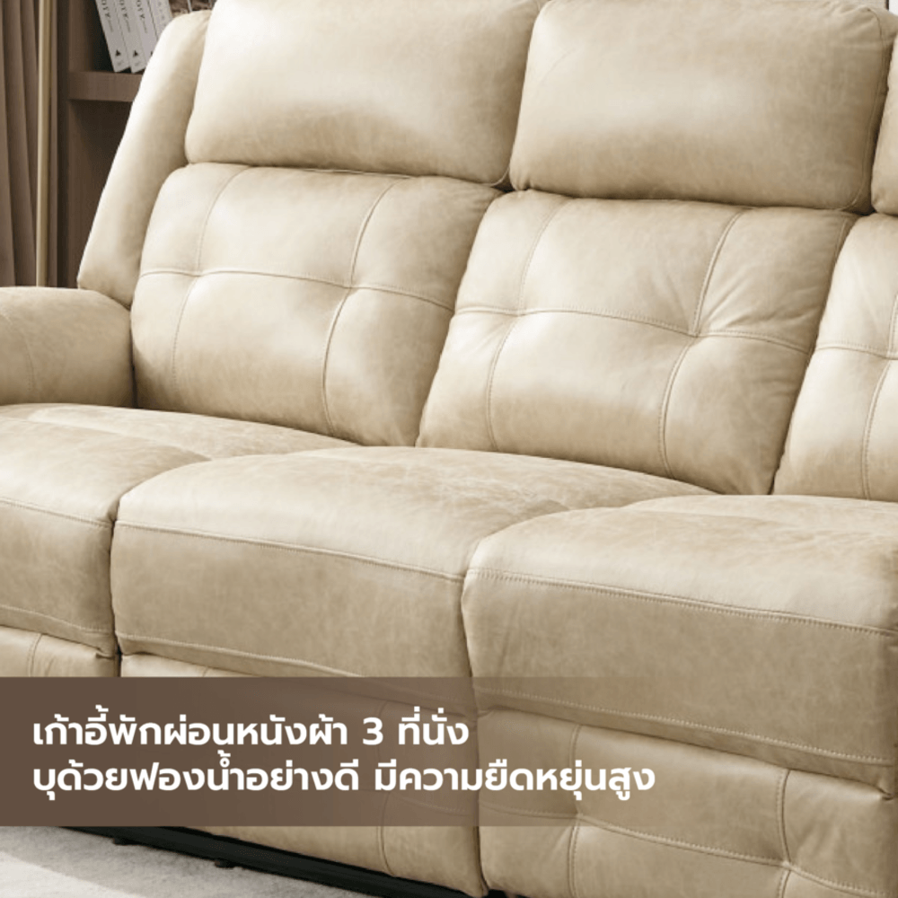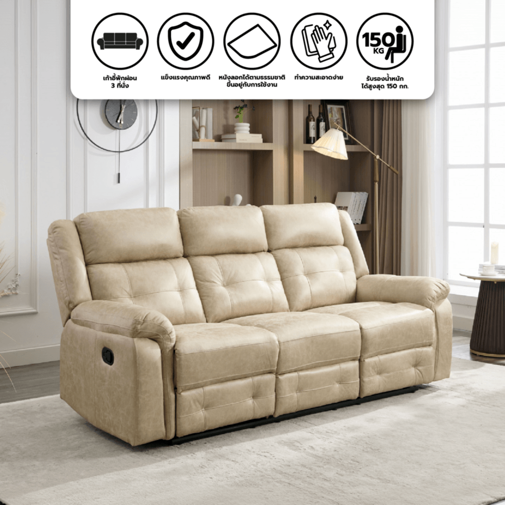 และดูแลรักษาง่าย มาพร้อมกับดีไซน์ที่ทันสมัยเข้าด้วยกันอย่างลงตัว เหมาะสำหรับเป็นจุดศูนย์กลางของห้องนั่งเล่น หรือมุมพักผ่อนส่วนตัวของคุณ สามารถปรับเอนพนักพิงได้หลายระดับ เพื่อตอบสนองทุกอิริยาบถ ขนาดกว้างขวาง สามารถนั่งได้ 3 คนสบายๆ
