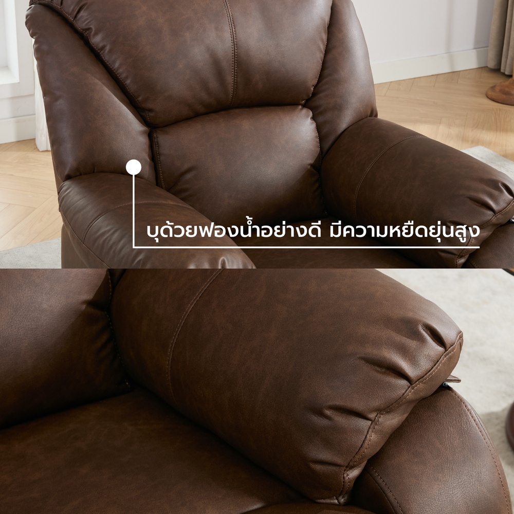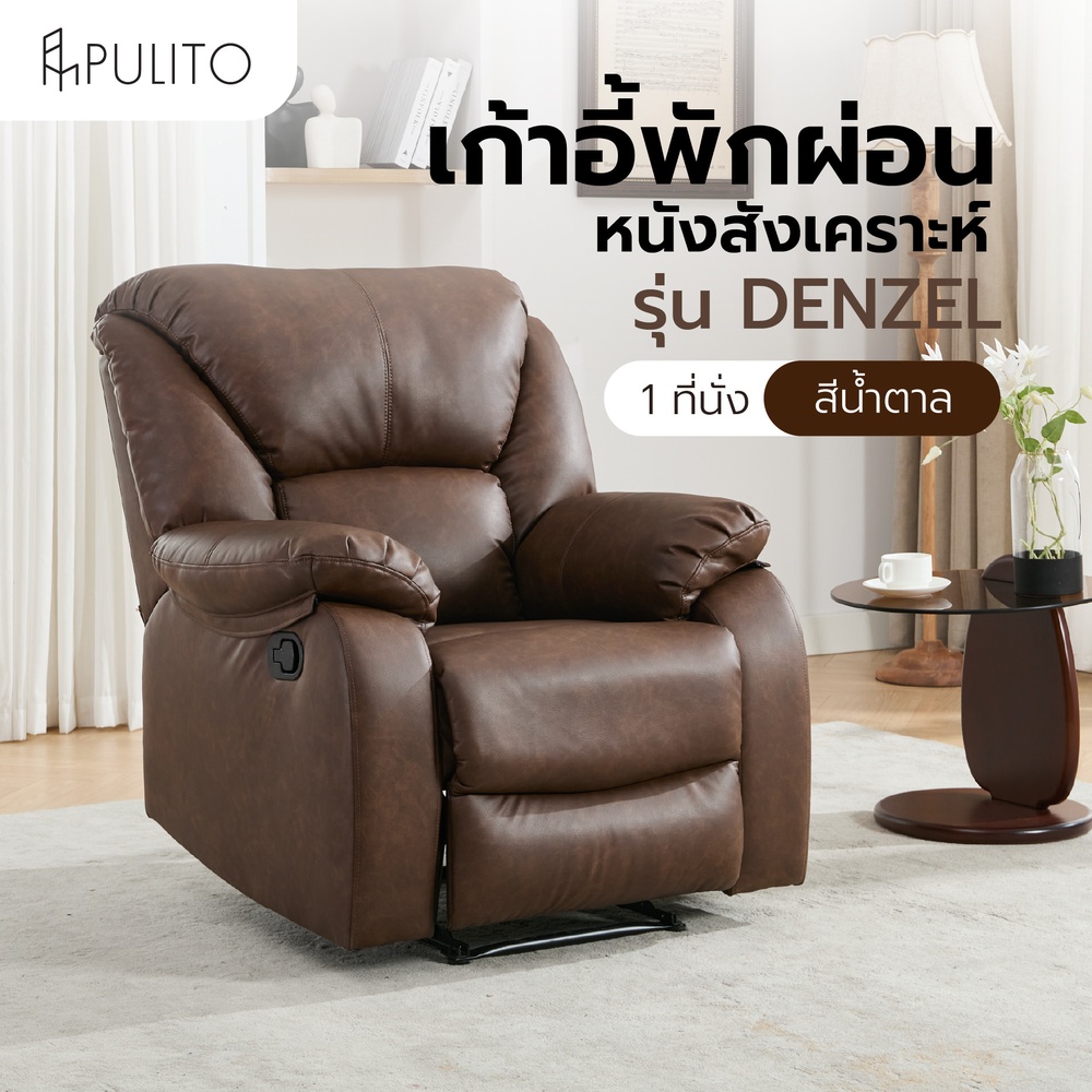 PULITO เก้าอี้พักผ่อนหนังสังเคราะห์ 1 ที่นั่ง รุ่น DENZEL ขนาด 87x97-167x101-78 ซม. สีน้ำตาล
