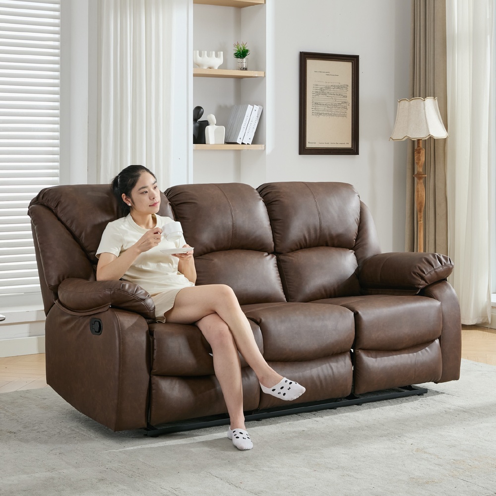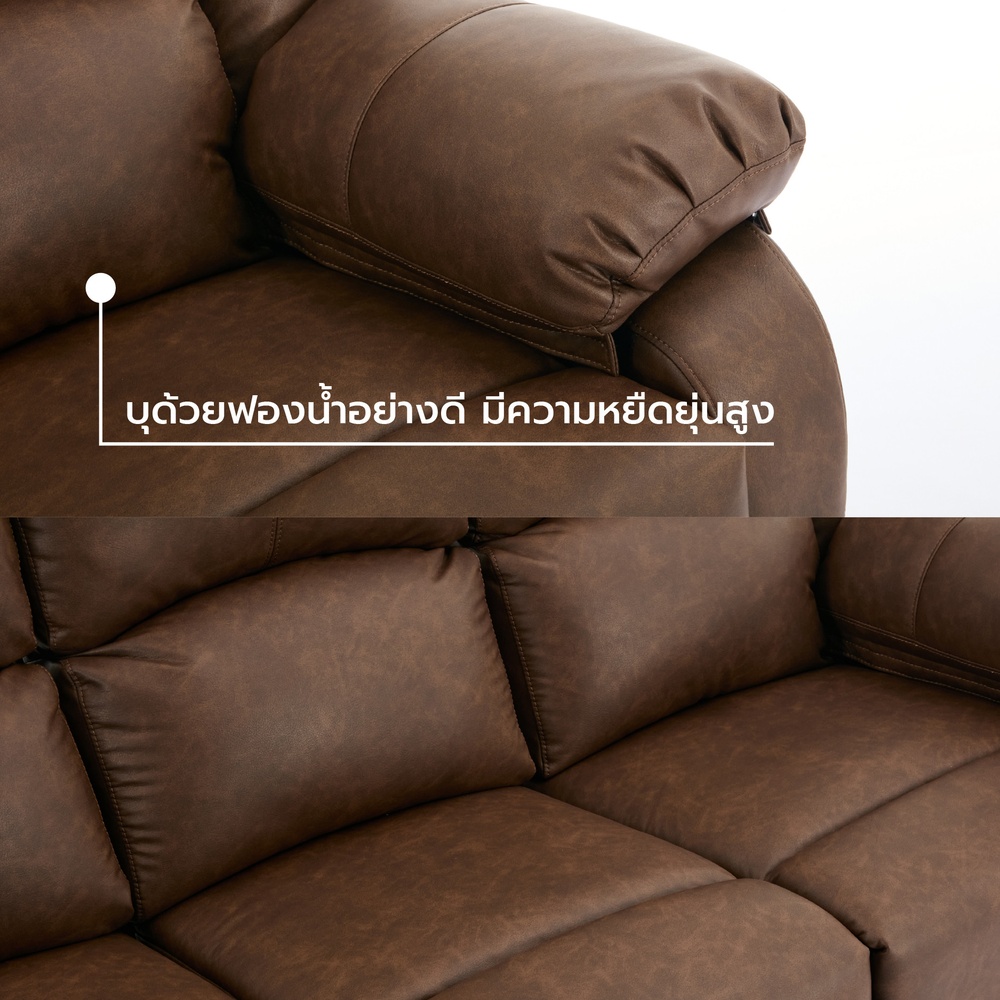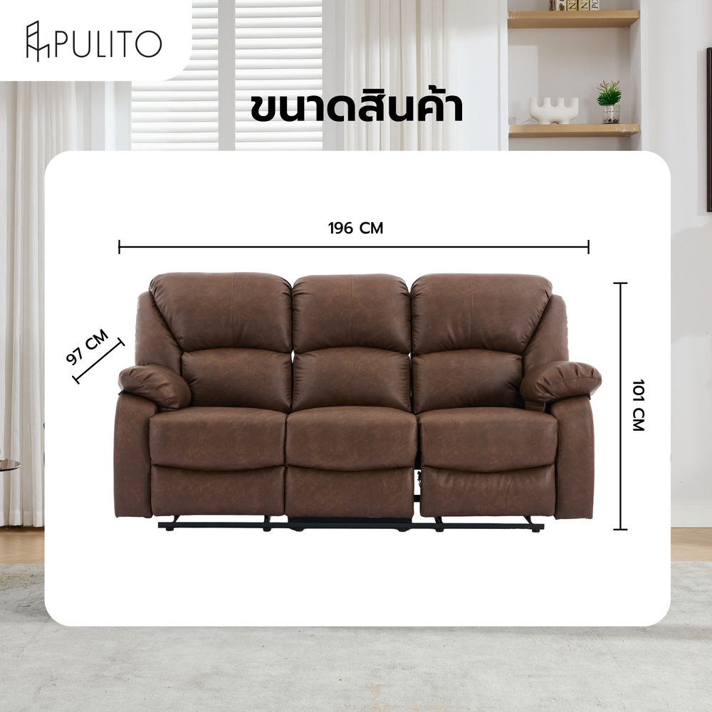 PULITO เก้าอี้พักผ่อนหนังสังเคราะห์ 3 ที่นั่ง รุ่น KASTOR ขนาด 196x97-167x101-78 ซม. สีน้ำตาล