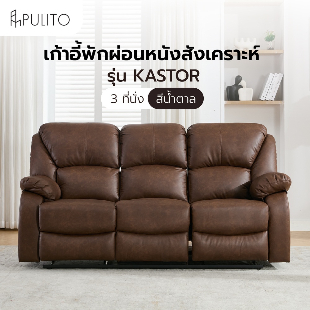 PULITO รุ่น KASTOR เป็นเก้าอี้พักผ่อน 3 ที่นั่งที่ออกแบบมาเพื่อความสะดวกสบายสูงสุด มาพร้อมระบบปรับเอนและที่วางขาอิสระสำหรับที่นั่งด้านข้างทั้งสองฝั่ง โครงสร้างทำจากเหล็กและไม้ผสมที่แข็งแรง หุ้มด้วยหนังสังเคราะห์คุณภาพสูงที่ให้สัมผัสนุ่มนวลและดูหรูหรา ทำความสะอาดง่าย เหมาะสำหรับวางในห้องนั่งเล่น ห้องรับแขก หรือมุมพักผ่อนส่วนตัว ให้คุณและครอบครัวได้ผ่อนคลายอย่างเต็มที่