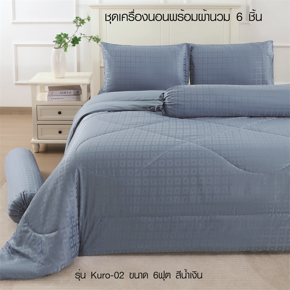 ชุดเครื่องนอน แบรนด์ TRUFFLE ชุดเครื่องนอนพร้อมผ้านวม 6 ชิ้น ขนาด 6 ฟุต
