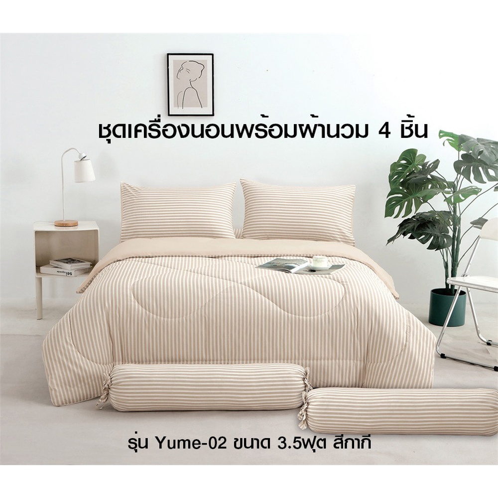 TRUFFLE ชุดเครื่องนอนพร้อมผ้านวม 4 ชิ้น รุ่น Yume-02 ขนาด 3.5 ฟุต สีกากี
