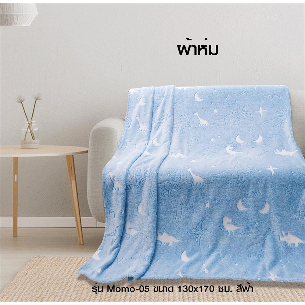 ผ้าห่ม Truffle รุ่น Momo-05 ผ้าห่มนุ่มนิ่มที่มาพร้อมความพิเศษด้วย ลวดลายเรืองแสงได้ในที่มืด เพิ่มความน่ารักและอบอุ่นให้ทุกค่ำคืน ผลิตจากflannel fleeceคุณภาพดี เนื้อผ้านุ่ม ลื่น ไม่ระคายผิว ให้ความอบอุ่นกำลังดี เหมาะสำหรับใช้ในห้องแอร์หรืออุณหภูมิปกติ ขนาดกะทัดรัด 130x170 ซม. น้ำหนักเบา พกพาสะดวก เหมาะสำหรับใช้ห่มตอนพักผ่อน นอนดูหนัง หรือพกไปเดินทางก็ได้