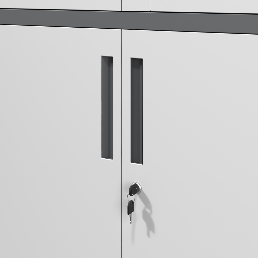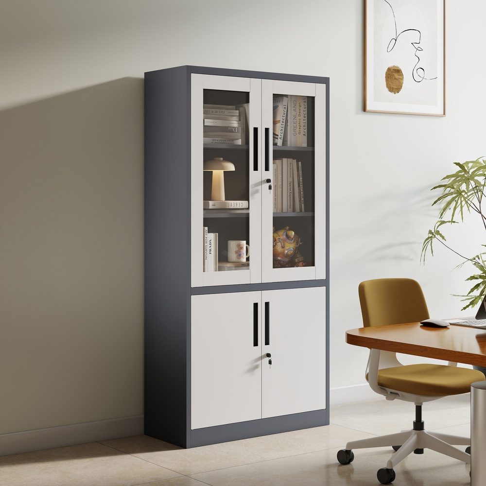 ตู้เหล็กเก็บเอกสาร บานกระจกและบานทึบเปิด-ปิด รุ่น Arlo ขนาด 40x90x185 ซม. สีขาว-เทา ออกแบบมาเพื่อตอบโจทย์การจัดเก็บอย่างมีสไตล์ เหมาะสำหรับการใช้งานในสำนักงานหรือที่บ้าน สามารถเก็บเอกสารสำคัญได้อย่างปลอดภัย พร้อมเพิ่มความสวยงามให้กับพื้นที่ทำงานของคุณ สร้างสภาพแวดล้อมที่เข้มแข็งและเป็นระเบียบ ด้วยวัสดุที่ทนทานและการออกแบบที่ทันสมัย คุณจะไม่ผิดหวังในการเลือกใช้!
