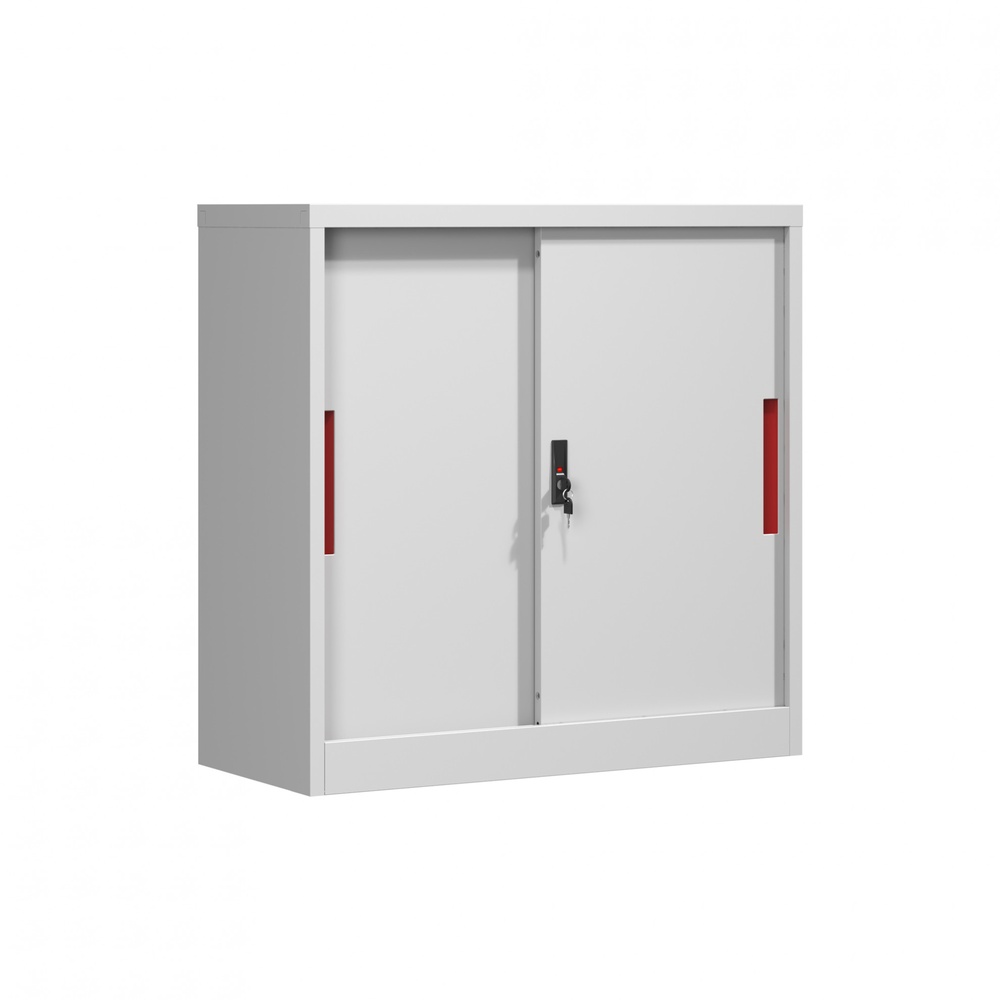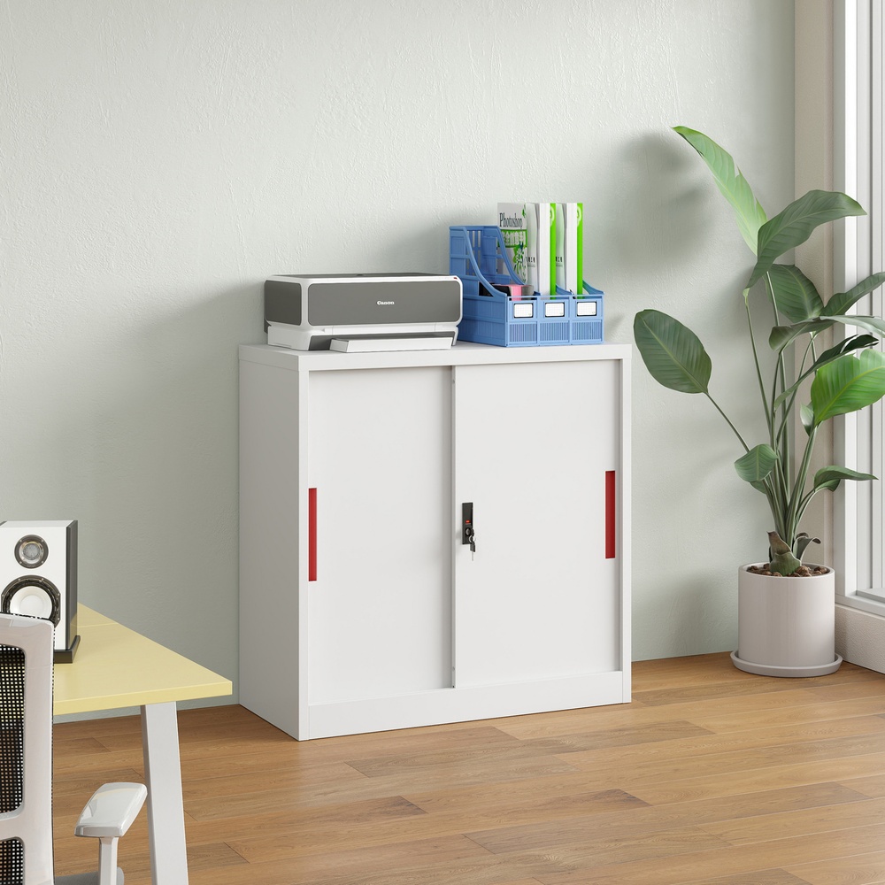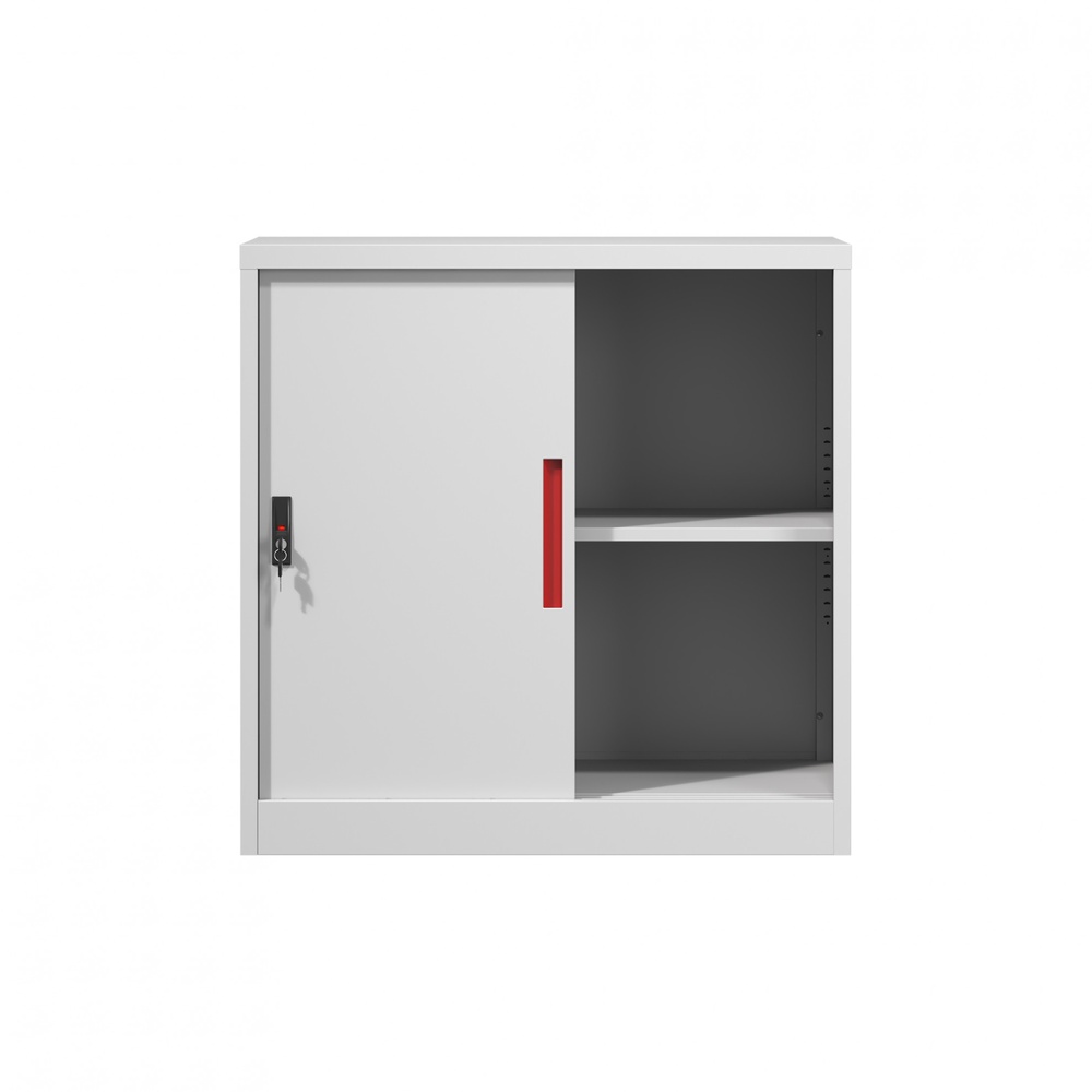 ตู้เก็บเอกสารพร้อมบานทึบ สีขาว-แดง