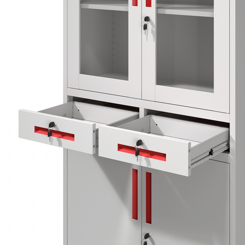 ตู้เก็บเอกสาร พร้อมบานกระจก และบานทึบ เปิด-ปิด