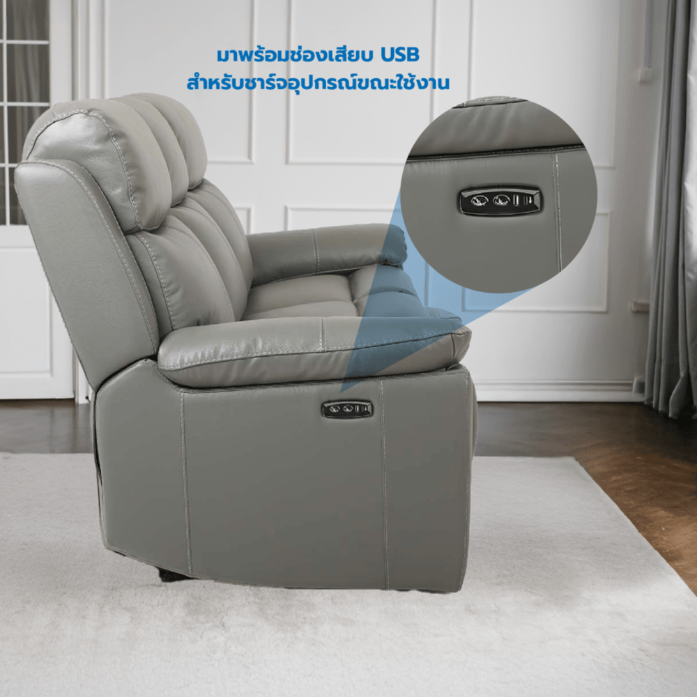 ฟังก์ชันปรับระดับไฟฟ้าบนโซฟารุ่นนี้ ช่วยให้คุณสามารถปรับเบาะนั่งได้ตามต้องการ ไม่ว่าจะเป็นการนั่งพักผ่อน หรือเอนนอนผ่อนคลาย โซฟามีระบบปรับเอนที่ใช้งานง่ายผ่านปุ่มควบคุมที่สะดวกสบาย พร้อมด้วยพอร์ตชาร์จ USB ทั้ง Type-A และ Type-C ที่ติดตั้งในตัว ช่วยให้คุณสามารถชาร์จอุปกรณ์อิเล็กทรอนิกส์ระหว่างนั่งพักผ่อนได้โดยไม่ต้องลุกไปเสียบปลั๊กที่อื่น เพิ่มความสะดวกและประหยัดเวลาในทุกช่วงเวลาของการใช้งาน