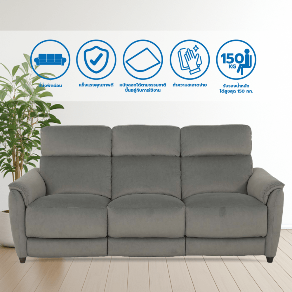 โซฟาที่ตอบโจทย์ทุกการใช้งานด้วยวัสดุ Pro-Tech FABRIC ที่ป้องกันน้ำและคราบสกปรก ทำความสะอาดง่าย ทนทานต่อรอยขีดข่วน เหมาะสำหรับครอบครัวที่มีสัตว์เลี้ยง โซฟาฐานปิดออกแบบให้ชิดพื้น ลดฝุ่นสะสมใต้โซฟา เพิ่มความสะอาดในบ้าน เบาะนั่งปรับเอนได้ด้วยระบบไฟฟ้า สะดวกสบายทุกการใช้งาน พร้อมพอร์ต USB Type-A และ Type-C สำหรับชาร์จอุปกรณ์ต่าง ๆ ได้ทันที โครงสร้างผลิตจากไม้เบิร์ชแท้ แข็งแรงทนทาน รองรับน้ำหนักได้สูงสุด 120 กก. เบาะรองนั่งบุฟองน้ำคุณภาพสูงที่ออกแบบให้เหมาะสมกับสรีระ พร้อมสปริงขดช่วยกระจายน้ำหนัก ลดแรงกดทับ นั่งนานไม่เมื่อยล้า เบาะรองแขนเสริมความนุ่มนวลให้ความสบายเพิ่มขึ้น ดีไซน์ทันสมัย หรูหรา เหมาะกับทุกสไตล์บ้าน ให้คุณพักผ่อนและรับรองแขกได้อย่างสมบูรณ์แบบ รุ่น Orchard คือโซฟาที่ผสมผสานความสวยงาม ฟังก์ชันครบครัน และความทนทานไว้อย่างลงตัว ตอบโจทย์ทุกไลฟ์สไตล์ในบ้านคุณ