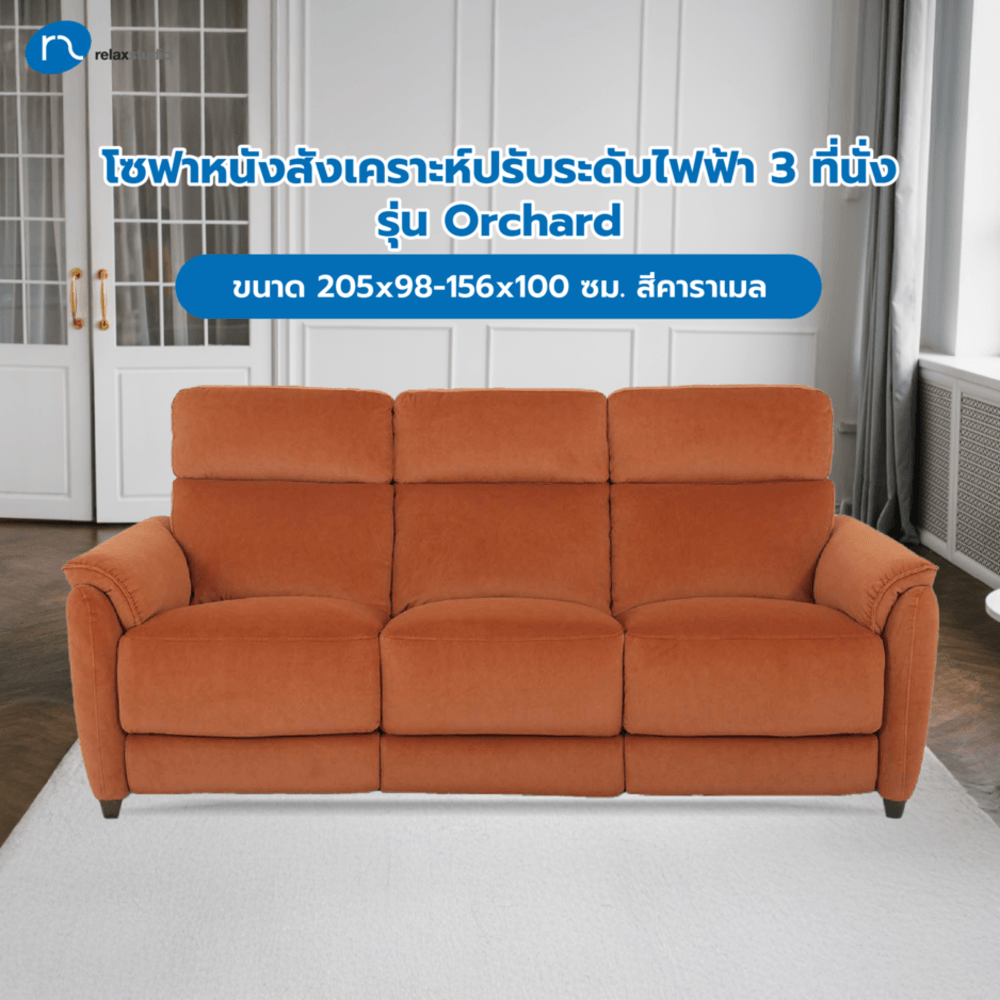 Relax Studio โซฟาหนังสังเคราะห์ปรับระดับไฟฟ้า 3 ที่นั่ง รุ่น Orchard ขนาด 205x98-156x100 ซม. สีคาราเมล