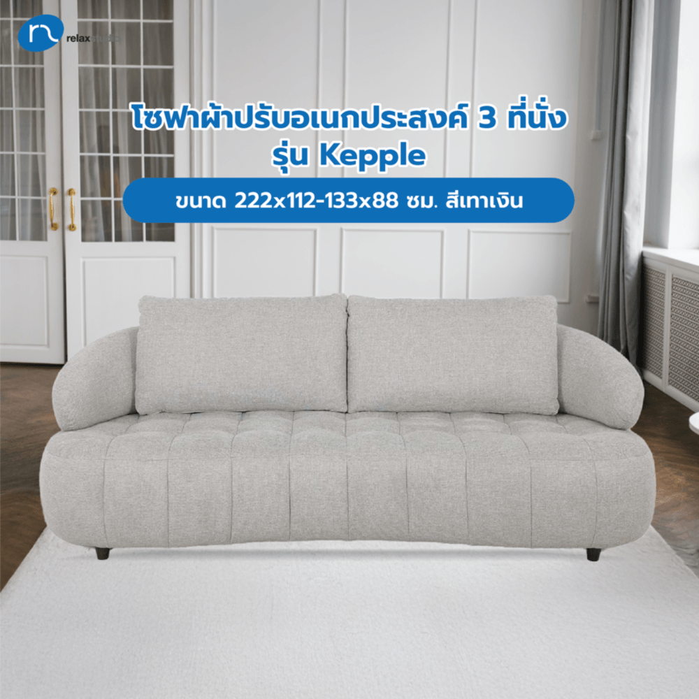 Relax studio โซฟาผ้าปรับอเนกประสงค์ 3 ที่นั่ง ขนาด 222x112-133x88 ซม. รุ่น Kepple สีเทาเงิน