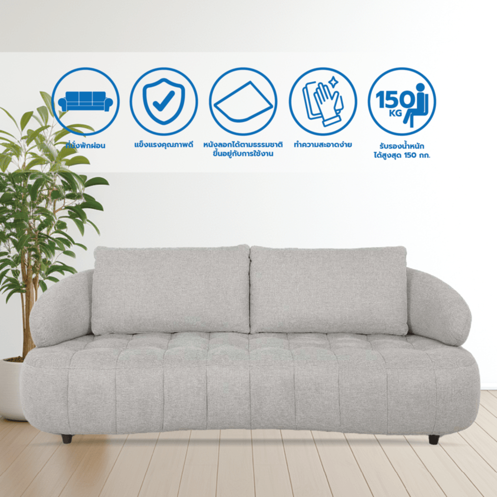 เติมเต็มทุกมุมของบ้านคุณด้วย Relax Studio รุ่น KEPPLE โซฟาผ้าปรับอเนกประสงค์ 3 ที่นั่ง ที่ออกแบบมาเพื่อตอบโจทย์ทั้งด้านความสวยงามและการใช้งานอย่างลงตัว ด้วยดีไซน์ที่ได้รับแรงบันดาลใจจากสไตล์โมเดิร์นร่วมสมัยในต่างประเทศ โซฟารุ่นนี้จึงเข้ากันได้กับทุกสไตล์การตกแต่ง ไม่ว่าจะเป็นบ้านมินิมอล สแกนดิเนเวียน หรือโมเดิร์นลอฟต์