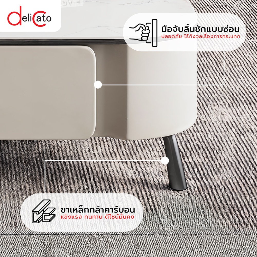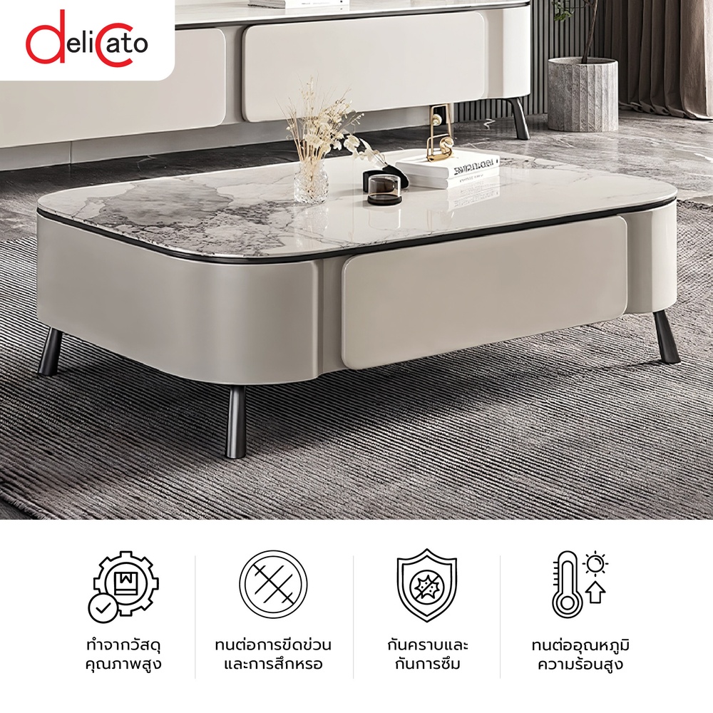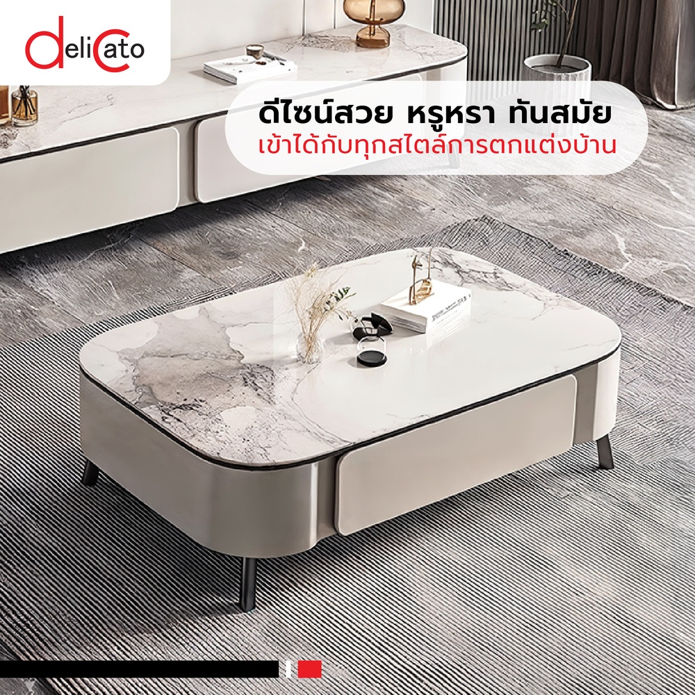 เติมเต็มความหรูหราให้พื้นที่ห้องนั่งเล่นด้วย DELICATO โต๊ะกลางหน้าท็อปหินอ่อน รุ่น ZENO ดีไซน์เรียบหรูทันสมัย หน้าท็อปลายหินอ่อน ให้สัมผัสที่สวยงามและดูพรีเมียม มาพร้อมโครงขาโลหะแข็งแรง เคลือบกันสนิม ช่วยเพิ่มความมั่นคงและคงทนในการใช้งาน