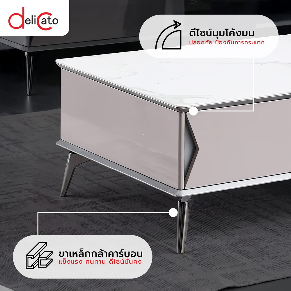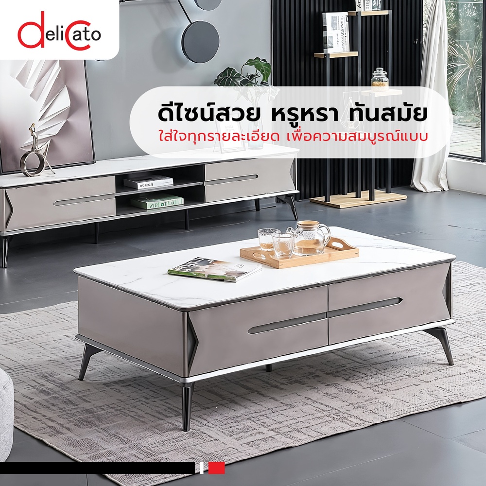 โต๊ะกลางดีไซน์โมเดิร์นจาก DELICATO รุ่นTARO มาพร้อมหน้าท็อปลายหินอ่อนลายสวยหรู เพิ่มความโดดเด่นให้กับห้องนั่งเล่นหรือมุมรับแขก โครงขาโลหะเคลือบสีคุณภาพดี แข็งแรงและมั่นคง ช่วยยกระดับบรรยากาศภายในบ้านให้ดูทันสมัยและมีสไตล์ เหมาะสำหรับตกแต่งได้ทั้งบ้าน คอนโด หรือสำนักงาน