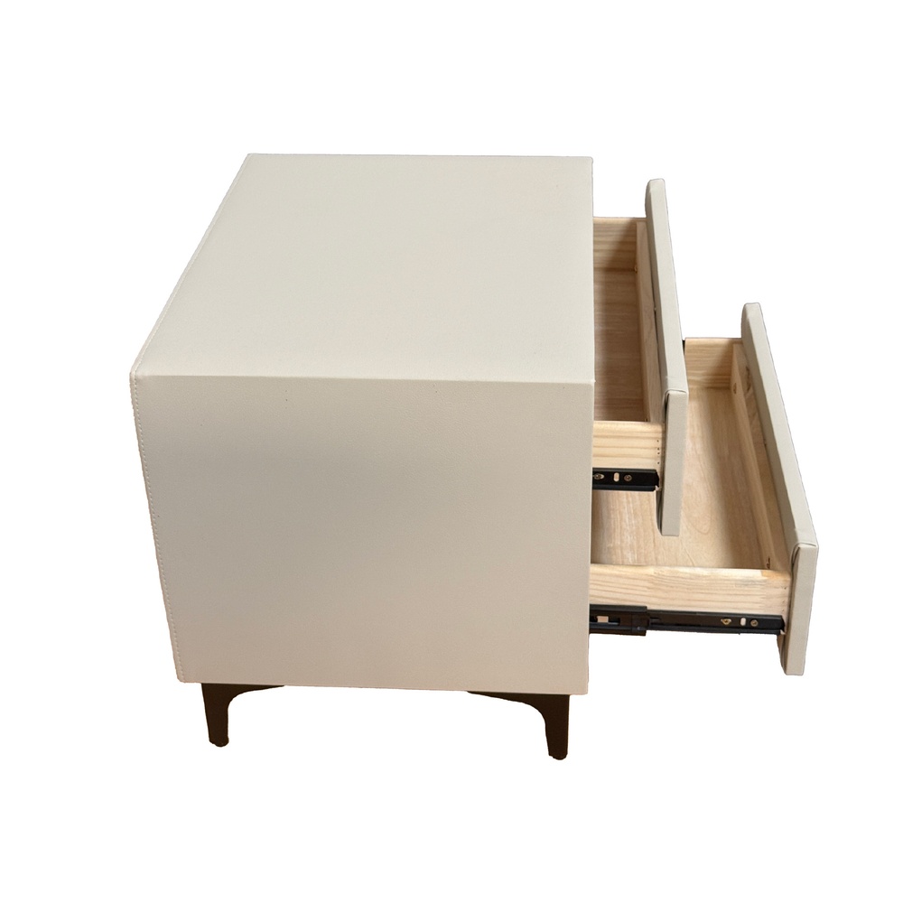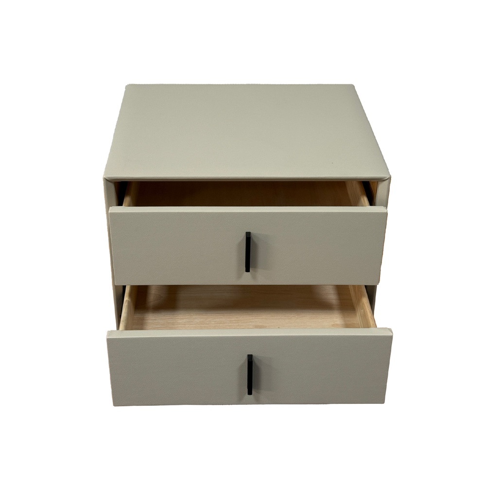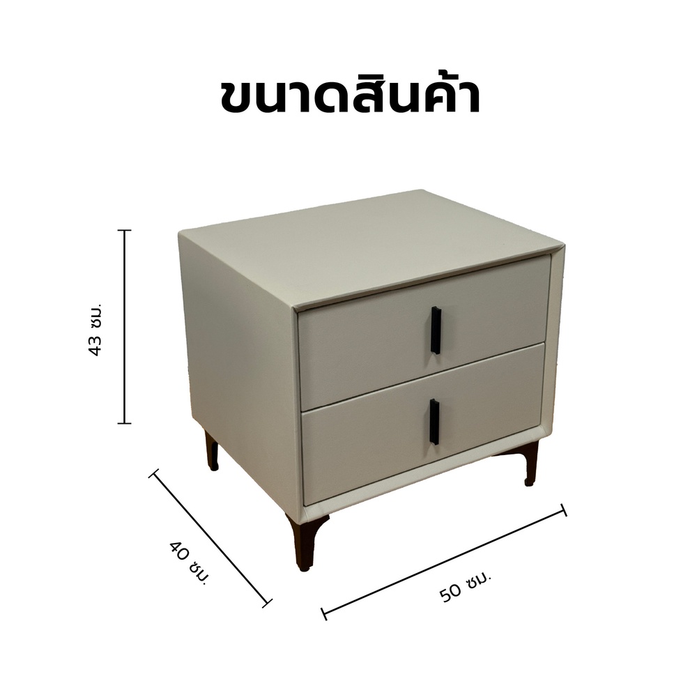 ภายในออกแบบให้มี ลิ้นชักเก็บของ 2 ช่อง เหมาะสำหรับจัดเก็บของใช้ส่วนตัว เช่น หนังสือ รีโมต โทรศัพท์ หรือของตกแต่งเล็กๆ ได้อย่างเป็นระเบียบ ขนาดกะทัดรัด 50x40x43 ซม. ช่วยประหยัดพื้นที่ เหมาะทั้งสำหรับวางข้างเตียง โต๊ะข้างโซฟา หรือมุมตกแต่งในคอนโดและบ้านสไตล์โมเดิร์น
