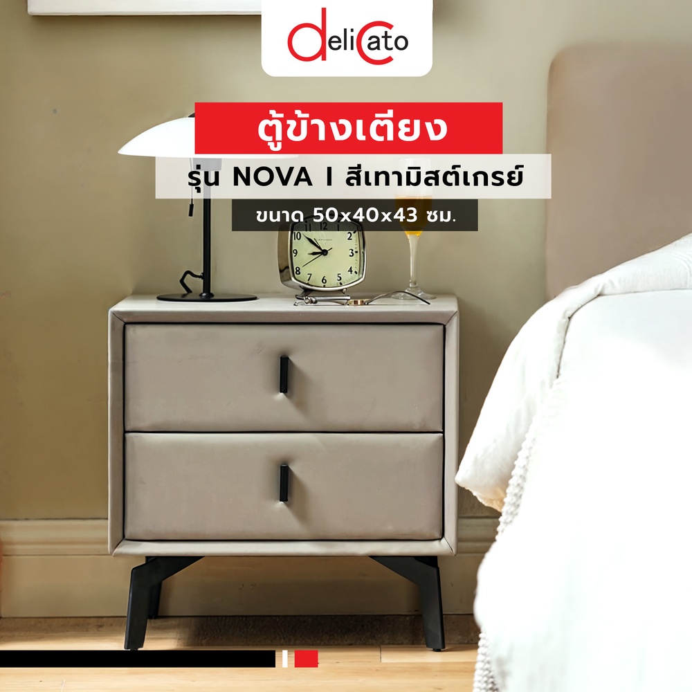 DELICATO ตู้ข้างเตียง รุ่น NOVA ขนาด 50x40x43 ซม. สีเทามิสต์เกรย์