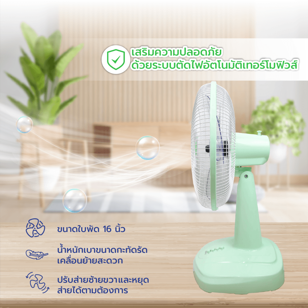 3.ไม่ควรแหย่นิ้ว หรือวัตถุใดๆ เข้าในช่องตะแกรง ไม่ควรวางบนที่นุ่มเช่น เตียง โซฟา ควรวางพัดลมบนพื้นที่เรียบเท่านั้น