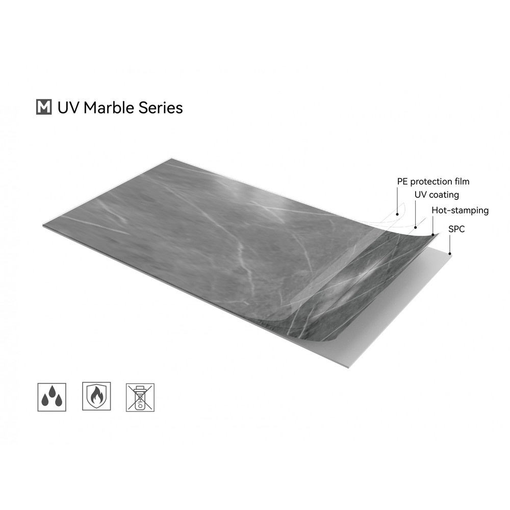 บอร์ด SPC Wall Panel เคลือบ UV สำหรับงานตกแต่งผนังภายใน GREATWOOD ผลิตจาก SPC (Stone Plastic Composite) เป็นวัสดุเทคโนโลยีใหม่ทดแทนการใช้ไม้จริง มีคุณสมบัติทนต่อความชื้น ไม่บวมน้ำ ไม่ลามไฟ ปลวกไม่กิน 100% ที่สำคัญไม่มีส่วนผสมของแร่ใยหิน จึงไม่อันตรายต่อสุขภาพ ออกแบบลวดลายโดดเด่นด้วยลายหินอ่อนสวยงามดูดีมีความทันสมัย ทำให้แผ่นหินมีความพิเศษ ให้ความรู้สึกเหมือนสัมผัสกับลายหินธรรมชาติ เหมาะสำหรับการติดตั้ง ใช้งานบริเวณพื้นที่ภายใน ติดตั้งง่าย มีความแข็งแรง ทนทาน ตอบโจทย์ทุกการออกแบบของคุณ ช่วยให้การออกแบบของคุณเป็นเรื่องง่าย