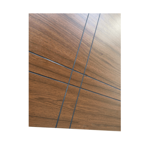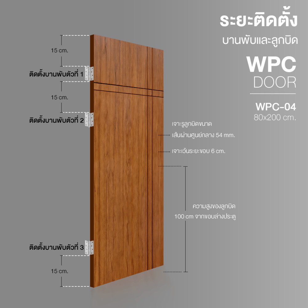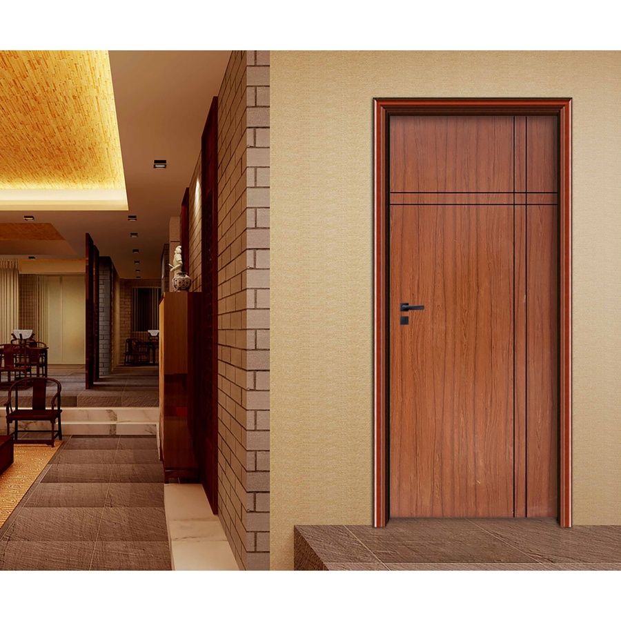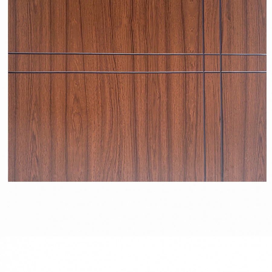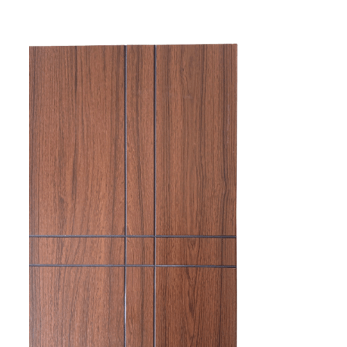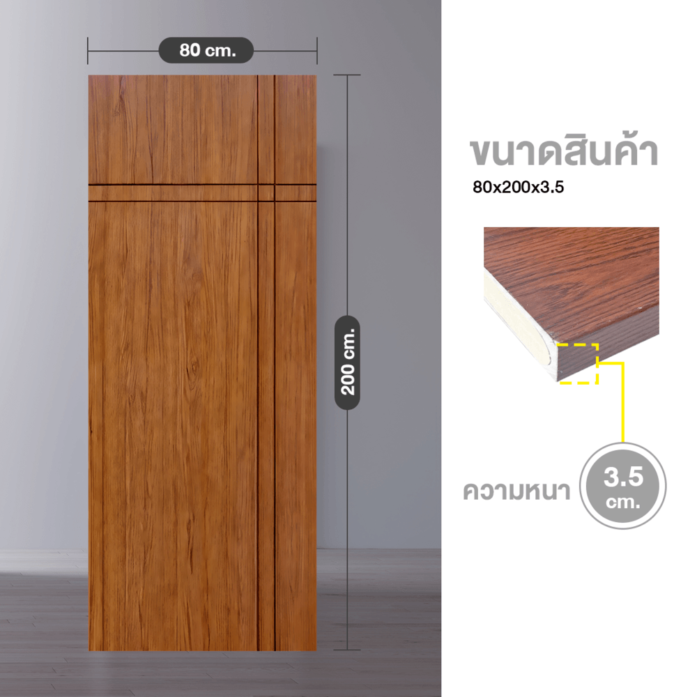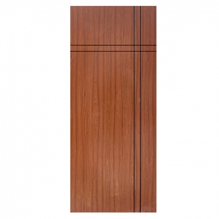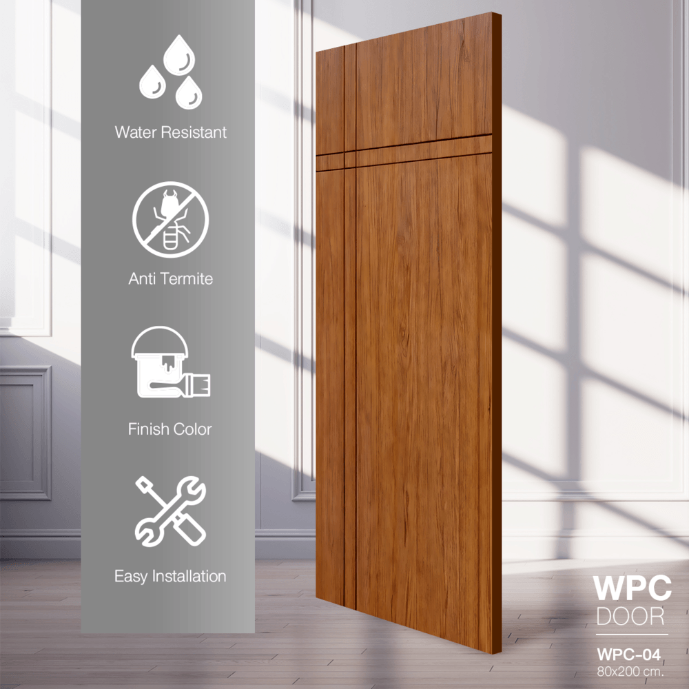 WELLINGTAN ประตู WPC บานทึบเซาะร่องดำ WPC-04 80 x 200 ซม. สีไม้สัก (ไม่เจาะ)