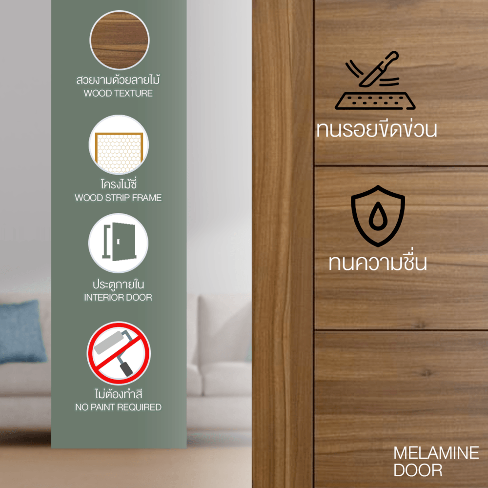 HOLZTUR ประตูเมลามีน MD-F05-2 80 x 200 cm. Thai Teak เป็นประตูไม้สำเร็จรูป