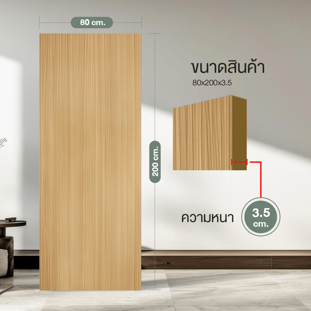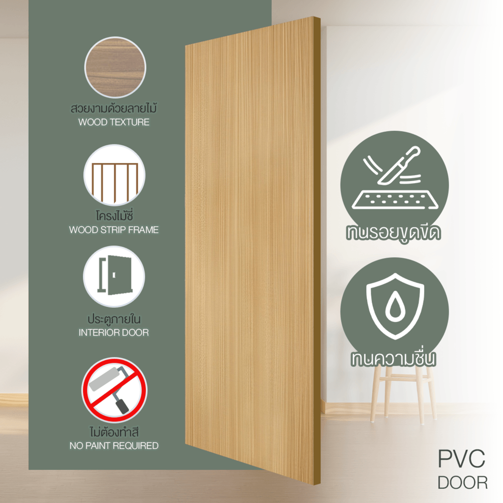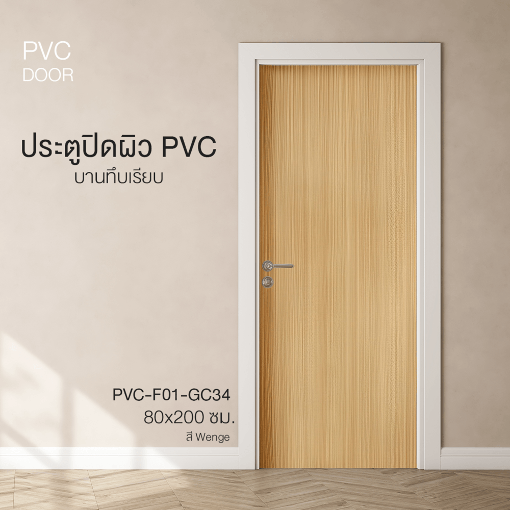 ประตูปิดผิวพีวีซี บานทึบเรียบ รุ่นPVC F01-GC34 ขนาด 80x200ซม. โดดเด่นด้วยการผลิตจากเม็ดพลาสติก PVC คุณภาพสูง แข็งแรงทนทานต่อทุกสภาวะ