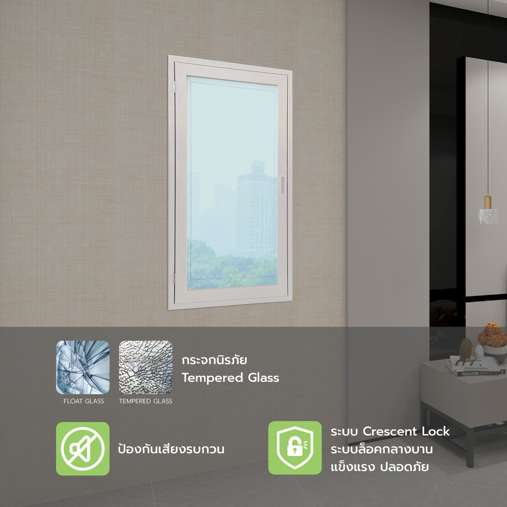 WELLINGTAN หน้าต่างไวนิล บานเปิด PCW0611 ขนาด 60x110ซม. สีขาว พร้อมมุ้ง มีคุณสมบัติทนทาน แข็งแรง ป้องกันเสียงได้ดี รวมถึงป้องกันความร้อน ทั้งนี้ยังมีคุณสมบัติเด่นเฉพาะตัวสินค้า ดังนี้