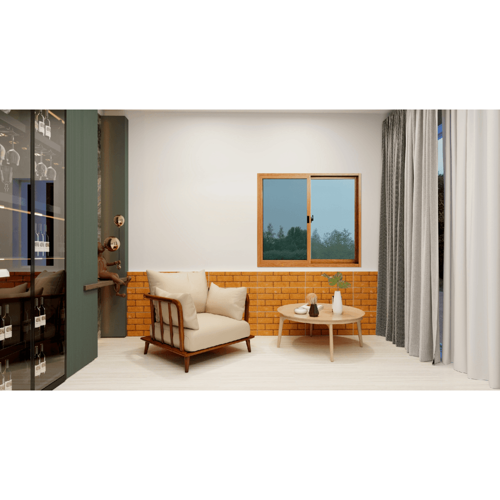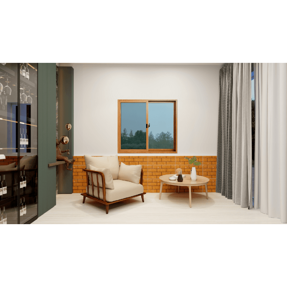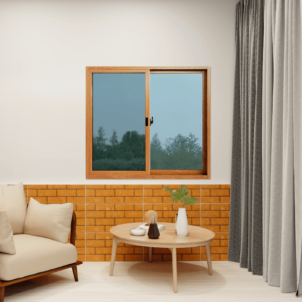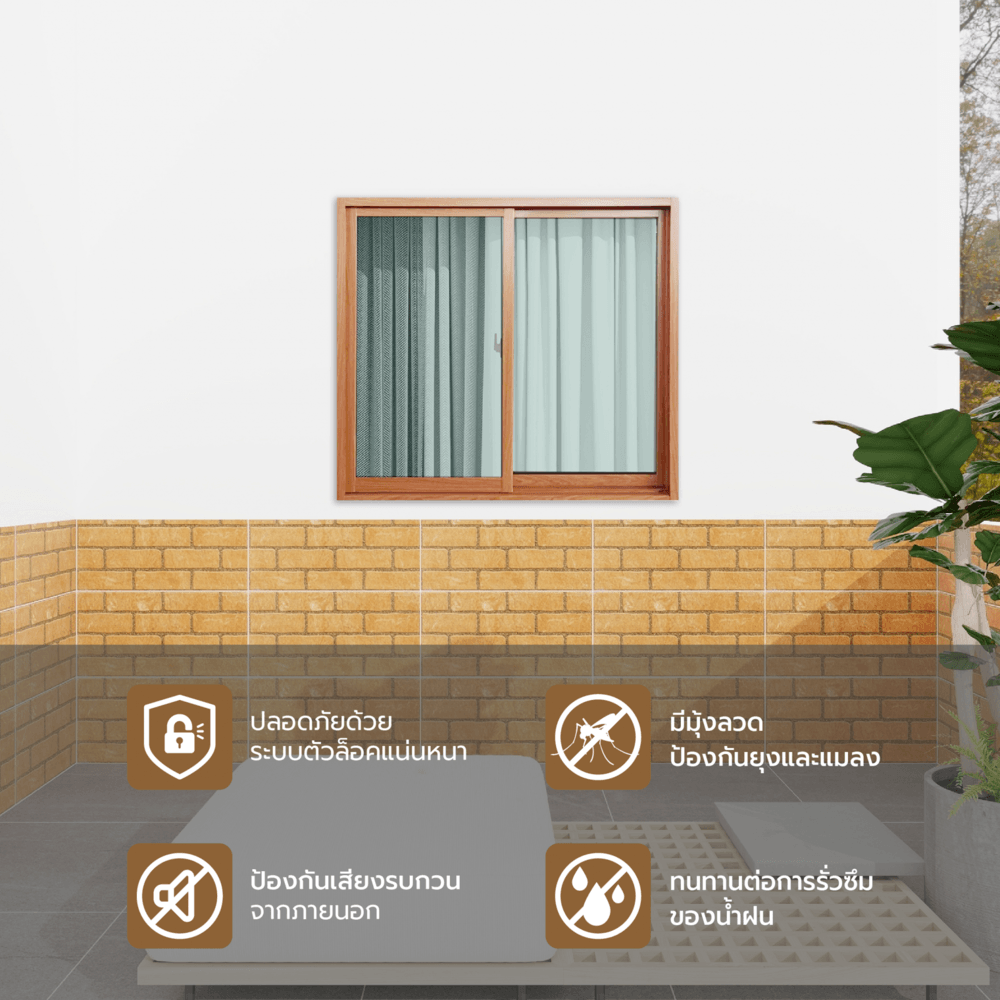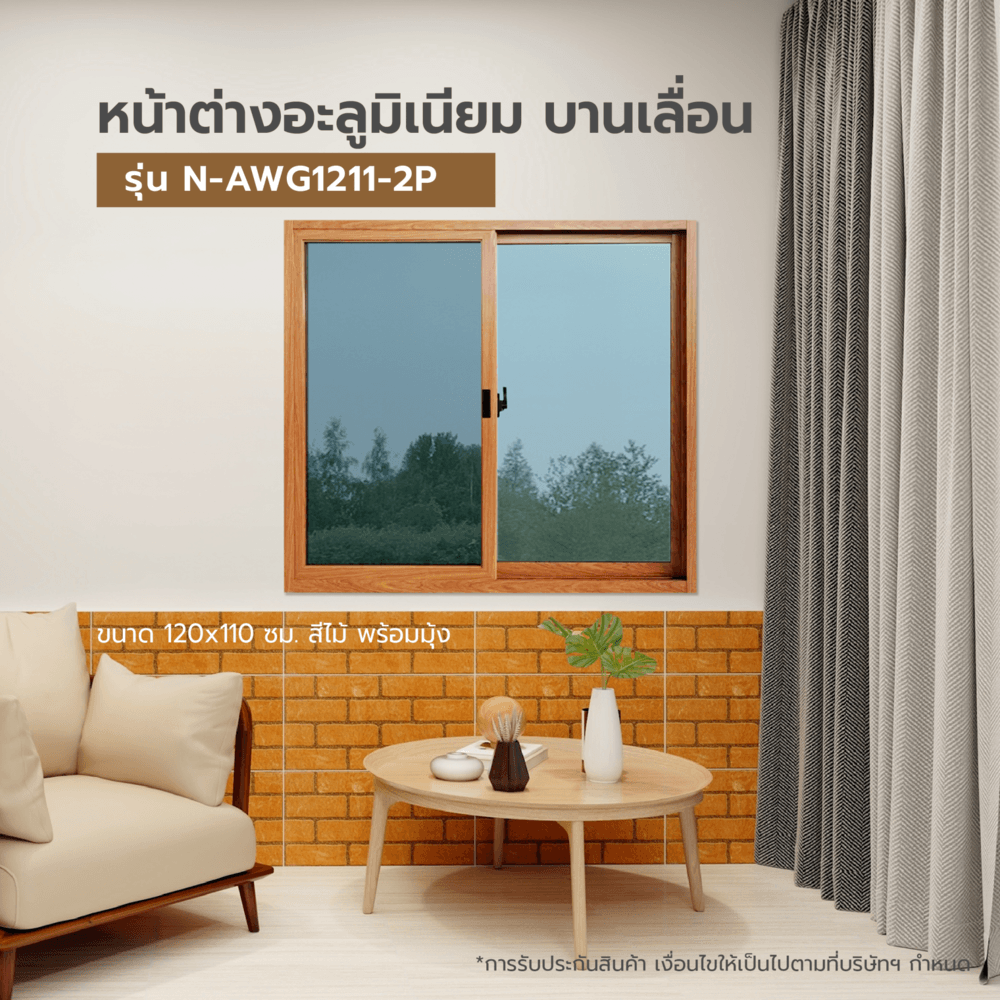 WELLINGTAN หน้าต่างอลูมิเนียมบานเลื่อน N-AWG1211-2P 120x110CM สีไม้พร้อมมุ้ง