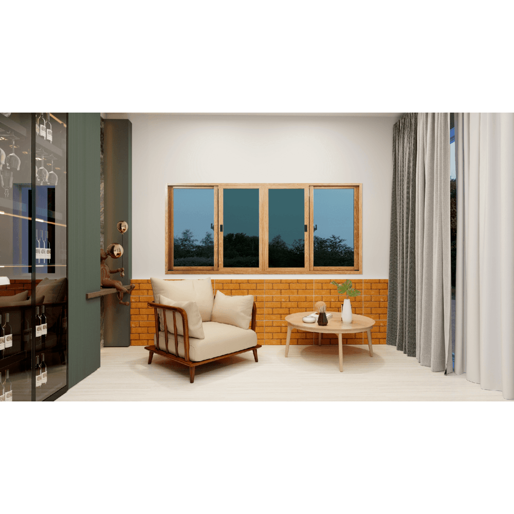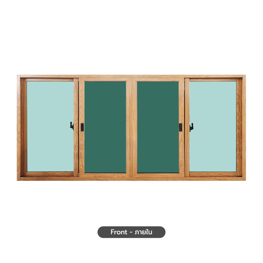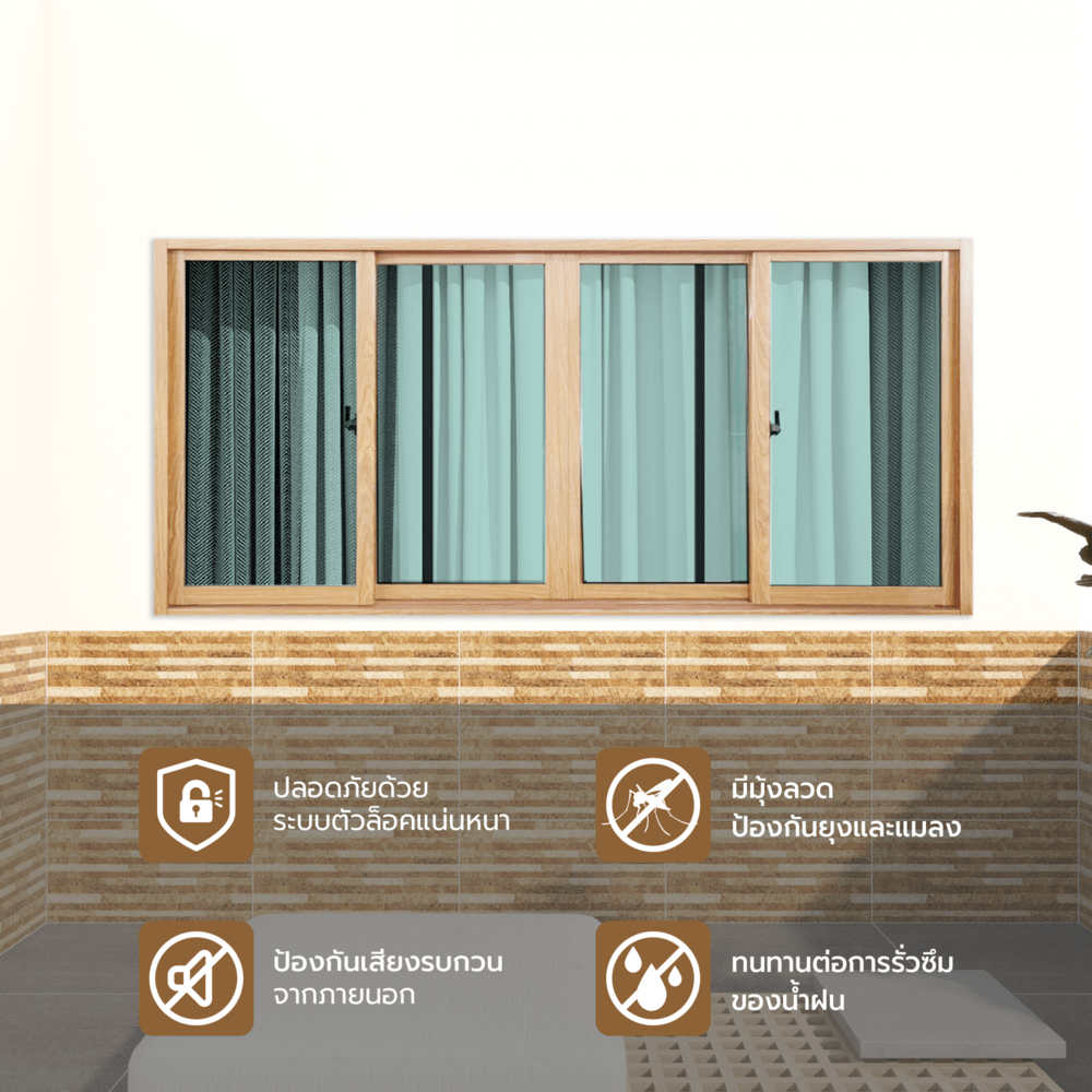 WELLINGTAN หน้าต่างอลูมิเนียมบานเลื่อน N-AWG2411-4P 240x110CM สีไม้พร้อมมุ้ง