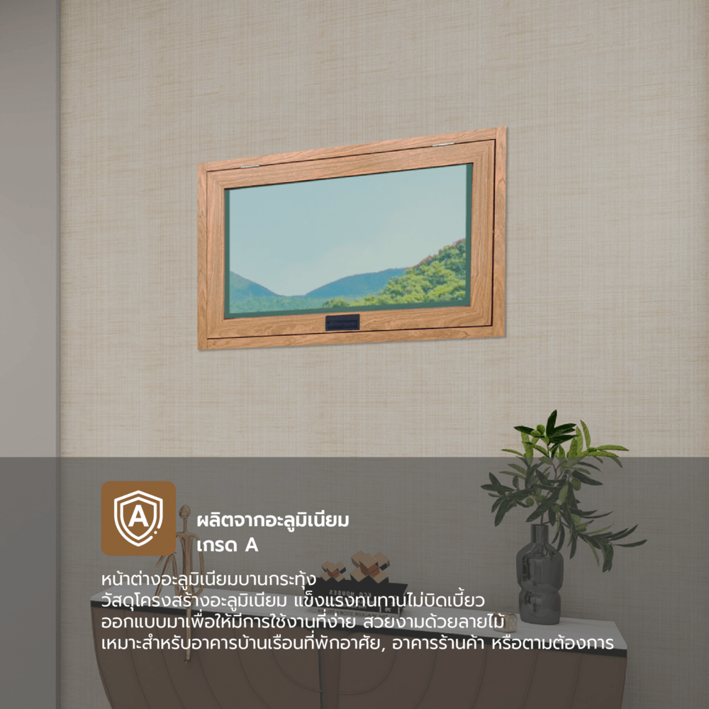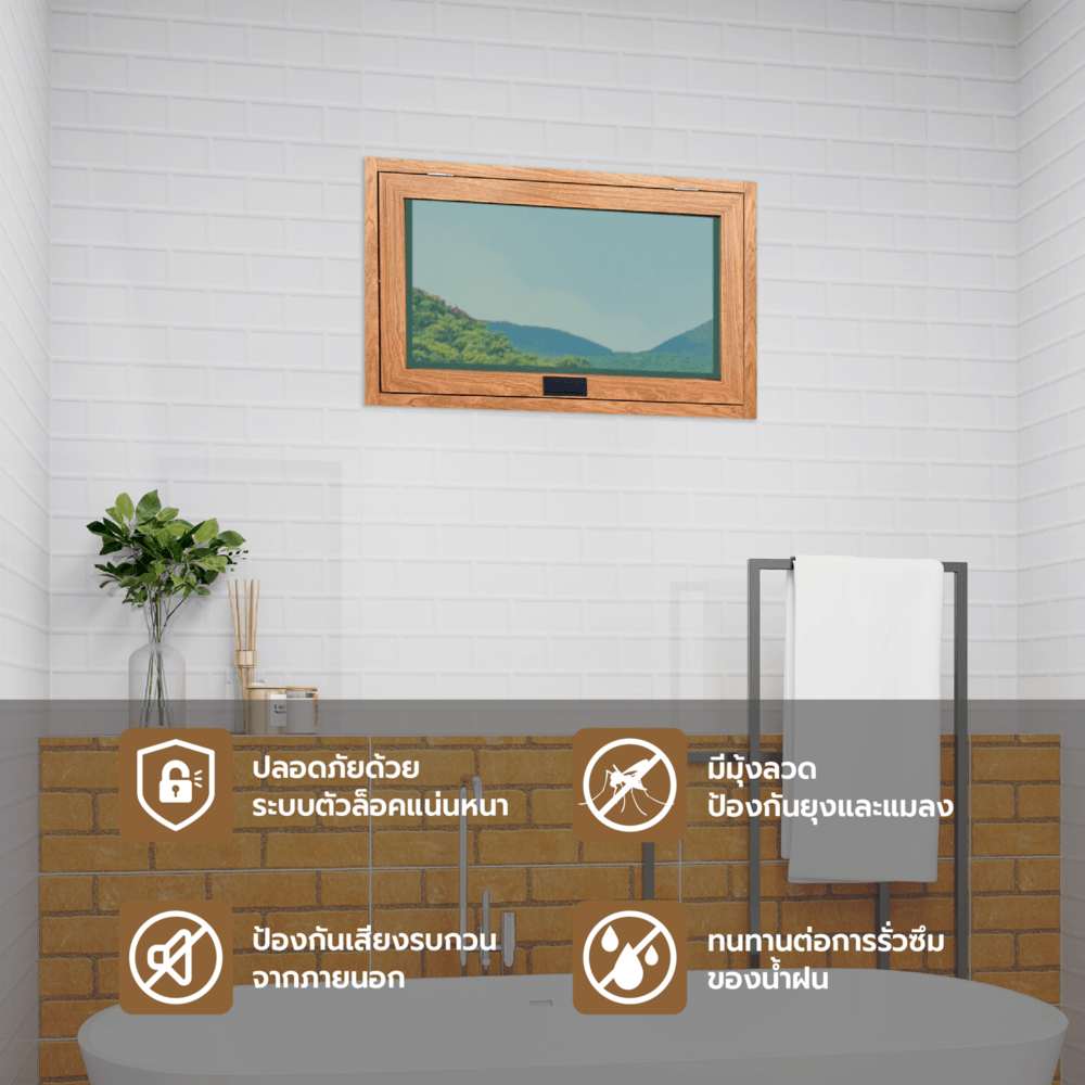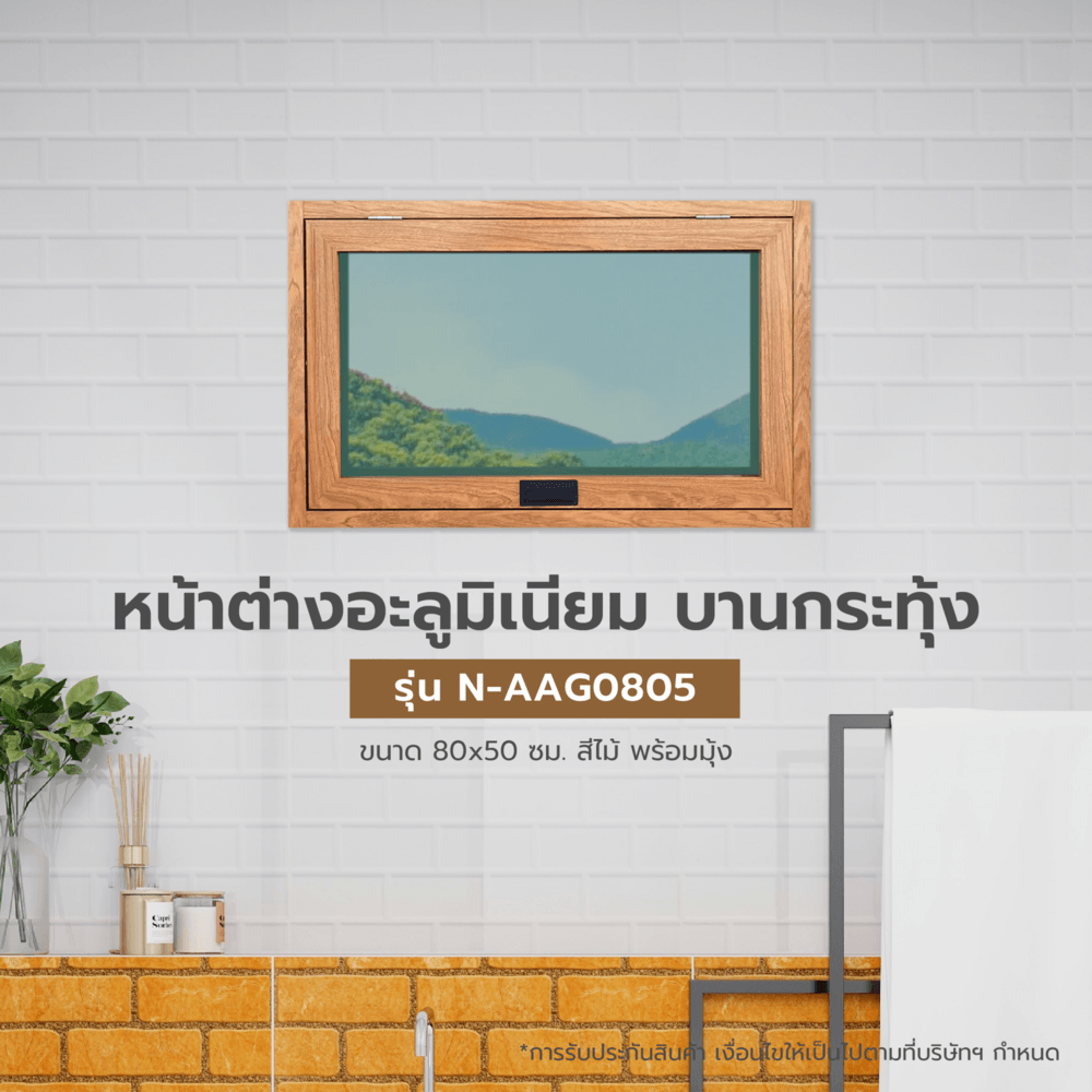 WELLINGTAN หน้าต่างอลูมิเนียมบานกระทุ้ง N-AAG0805 80x50CM สีไม้พร้อมมุ้ง
