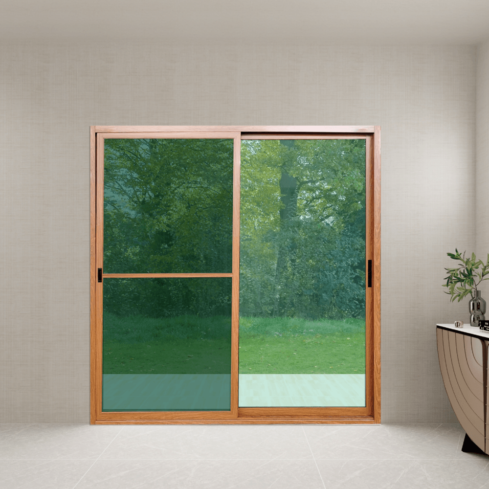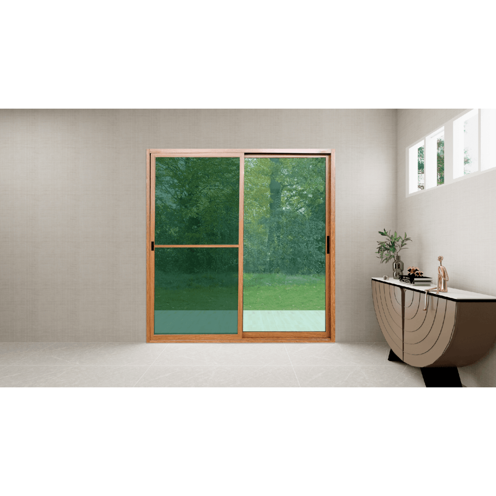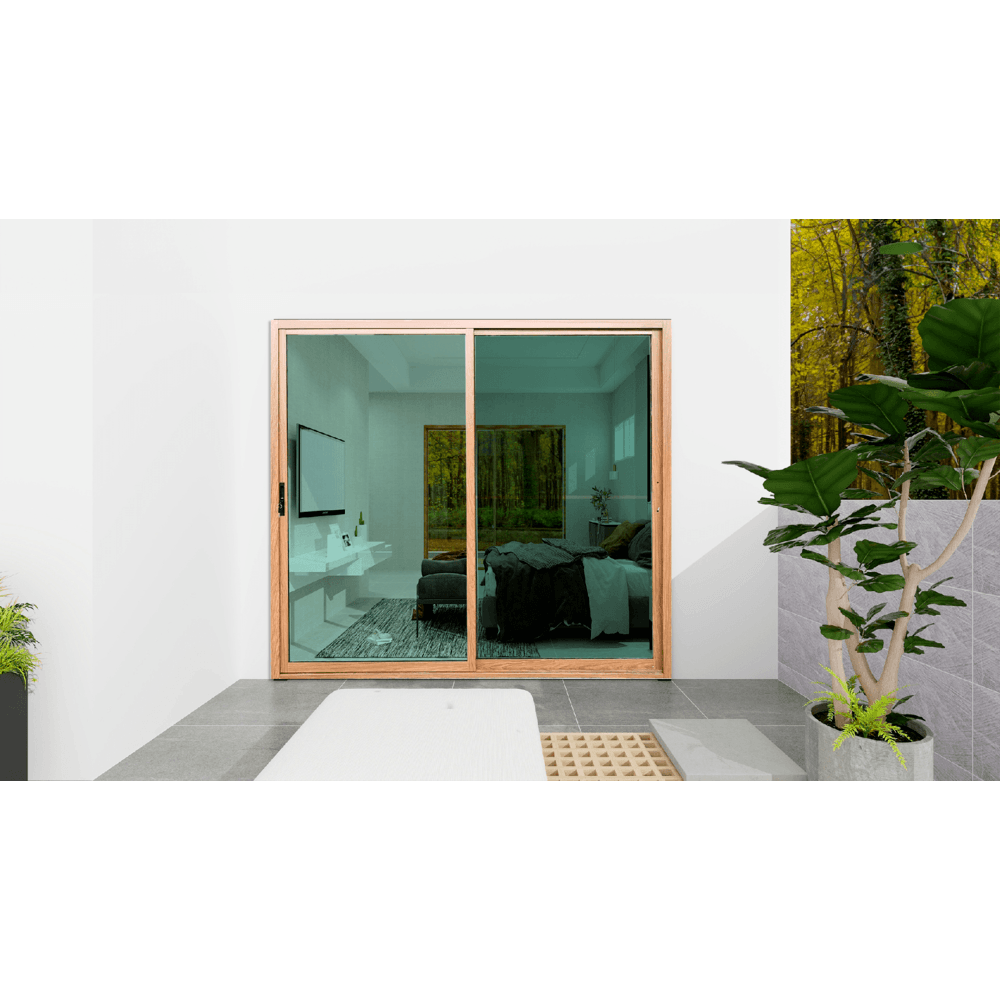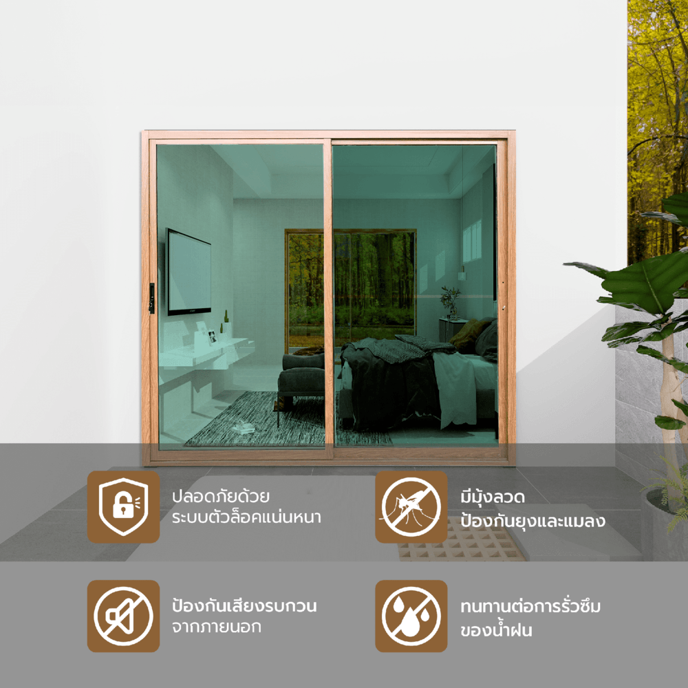 WELLINGTAN ประตูอลูมิเนียมบานเลื่อน N-ADG2025 200x205CM สีไม้พร้อมมุ้ง